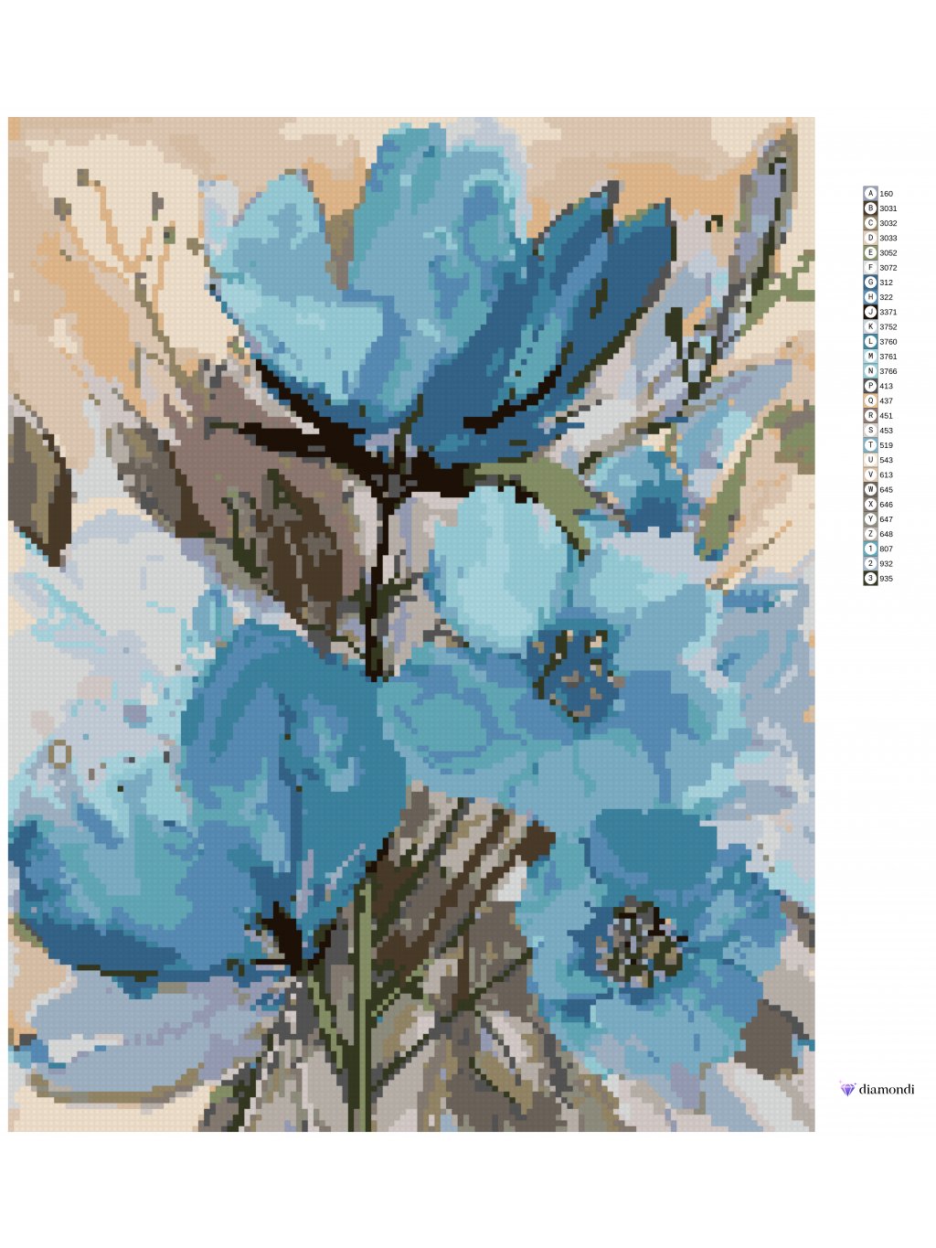 Diamantové maľovanie - ABSTRAKCIA MODRÝCH KVETOV II