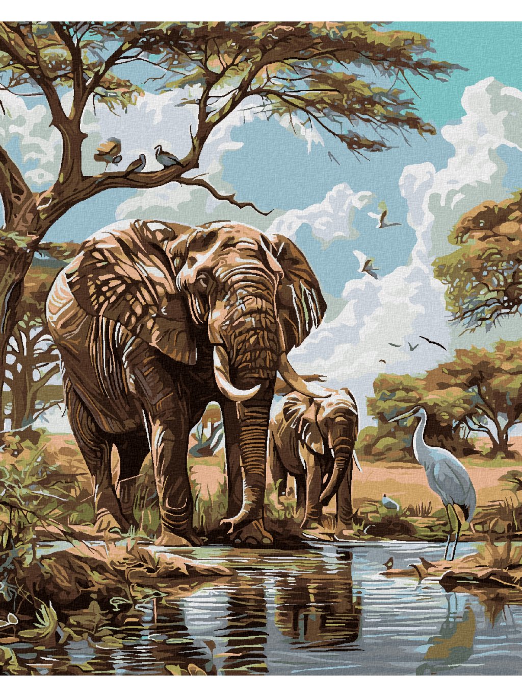Diamantové maľovanie - AFRICKÉ SAFARI SLONY