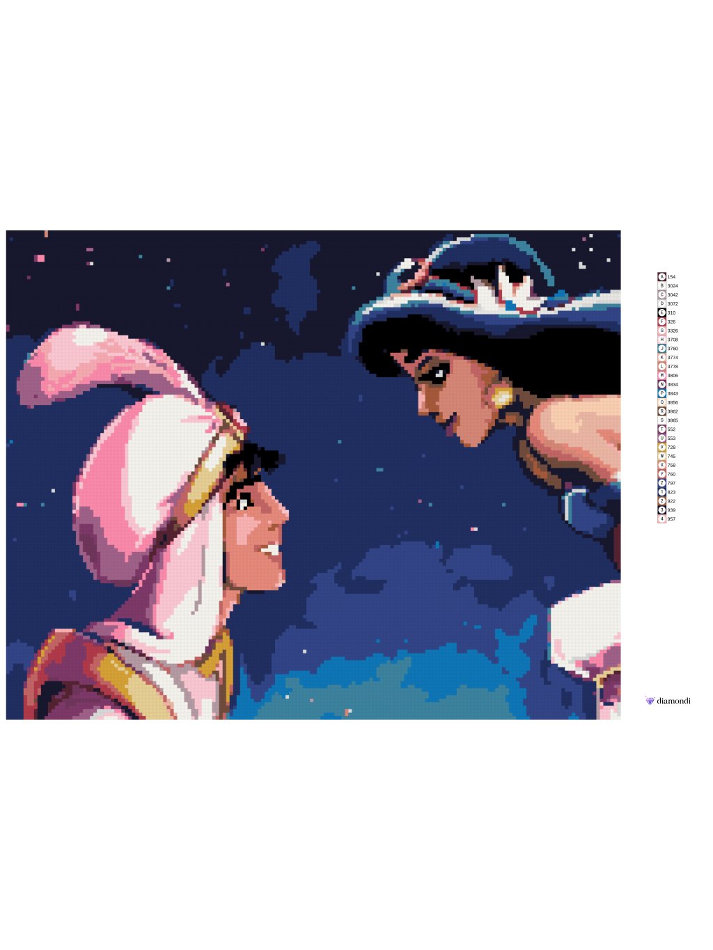 Diamantové maľovanie - ALADDIN A JAZMÍNA NA BALKÓNE