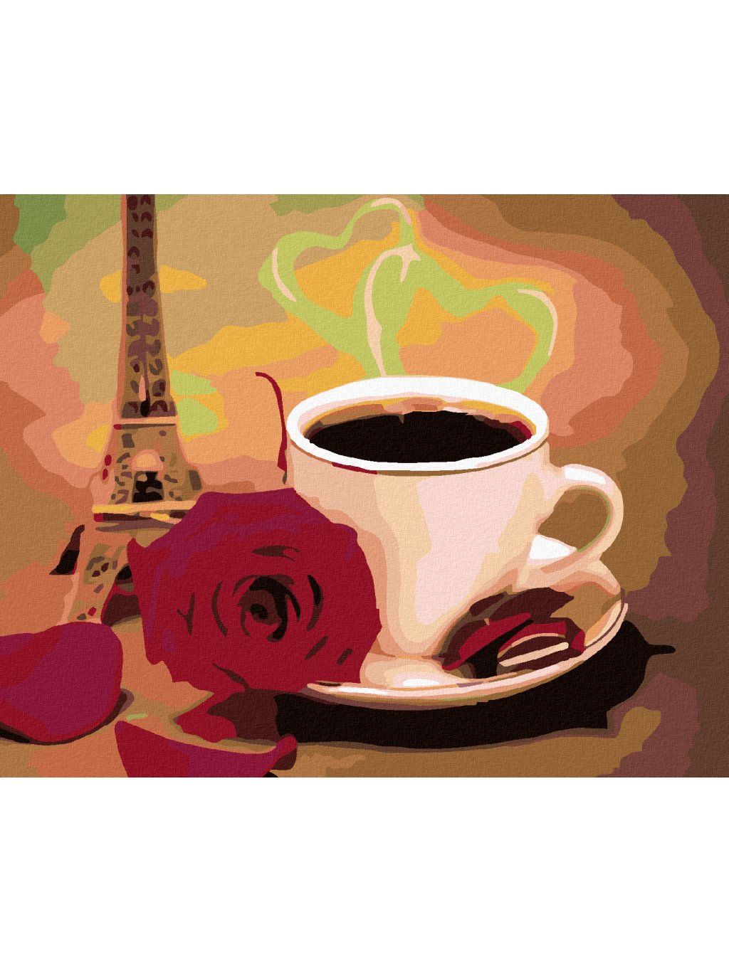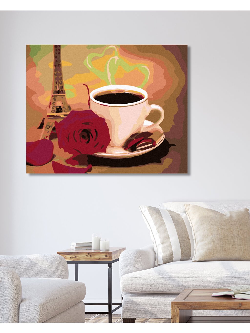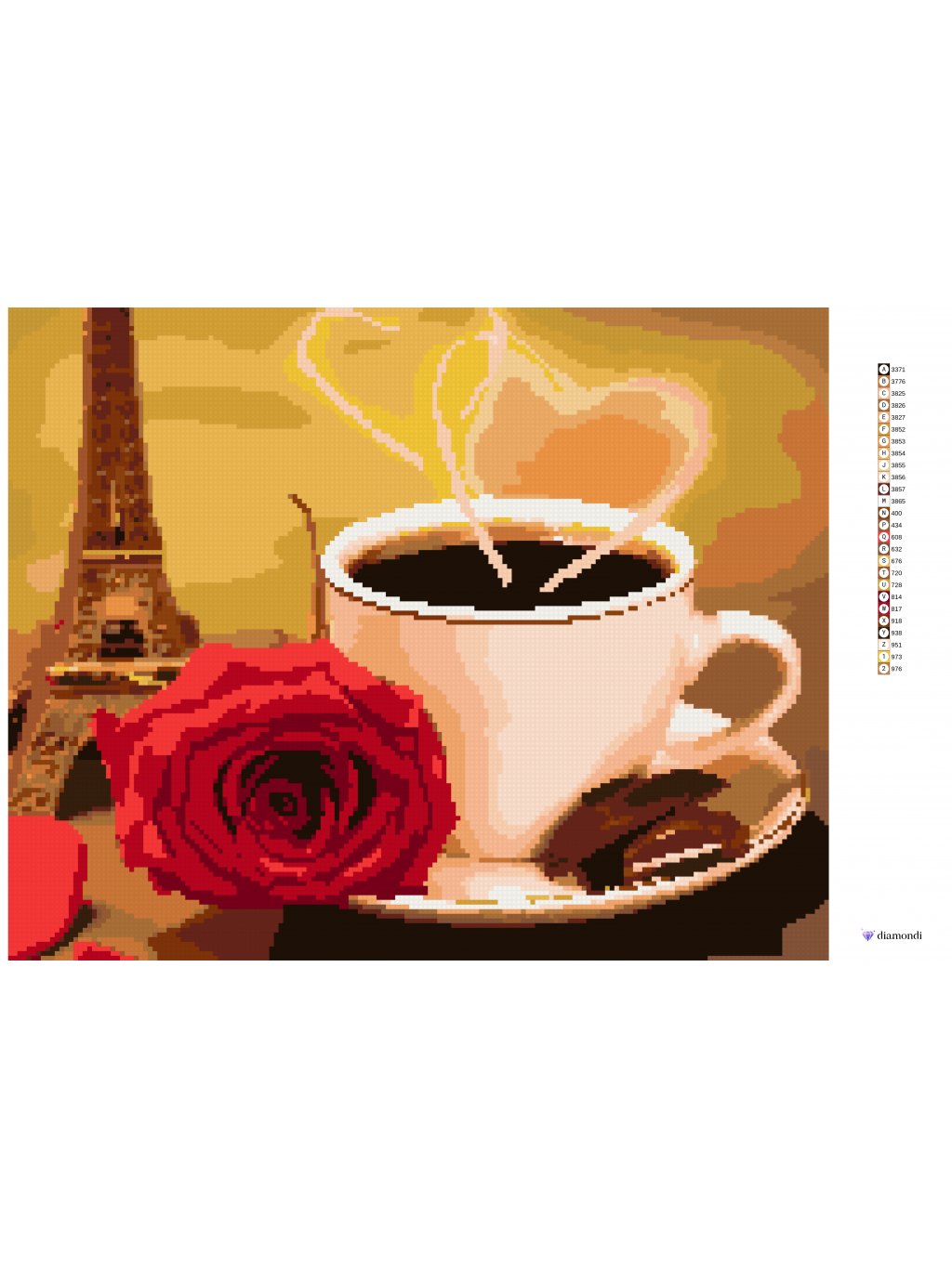 Diamantové maľovanie - BIELA ŠÁLKA KÁVY S RUŽOU A EIFFELOVKOU