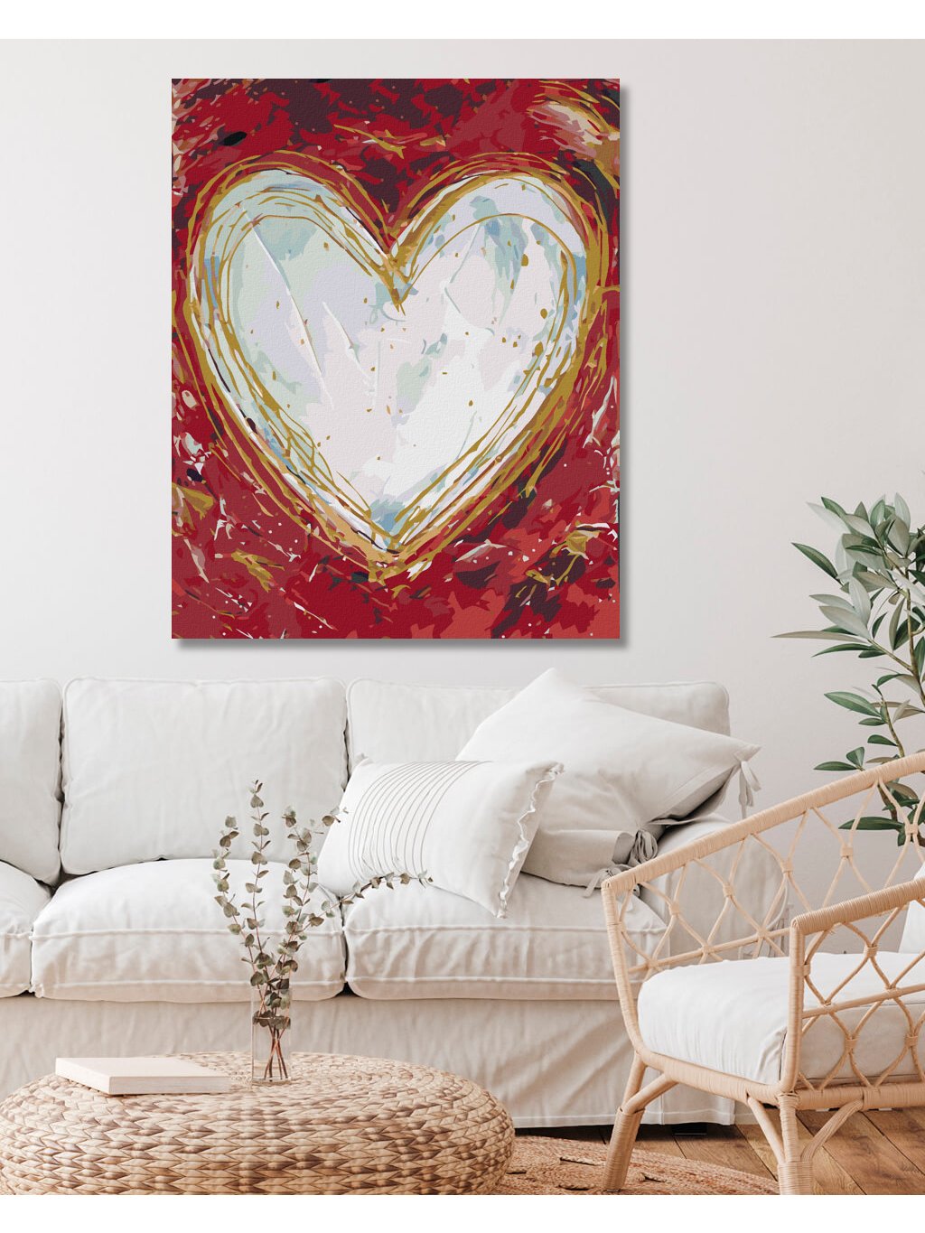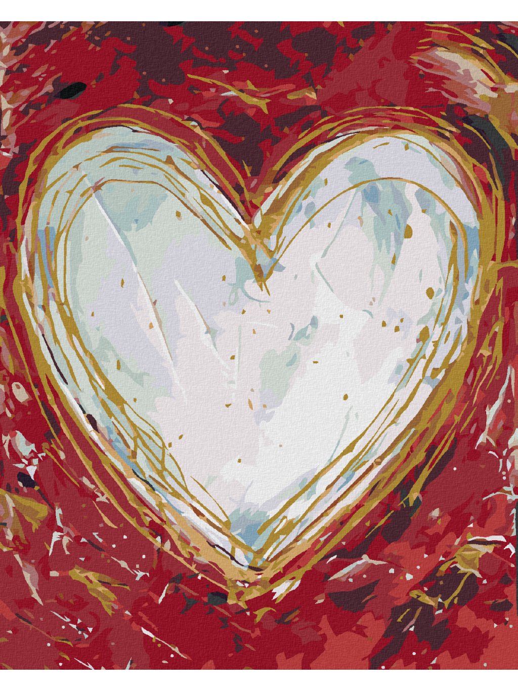 Diamantové maľovanie - BIELE SRDCE NA ČERVENOM POZADÍ (HALEY BUSH)