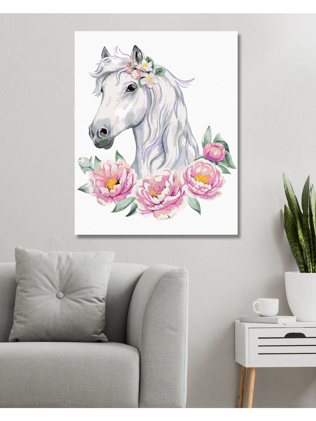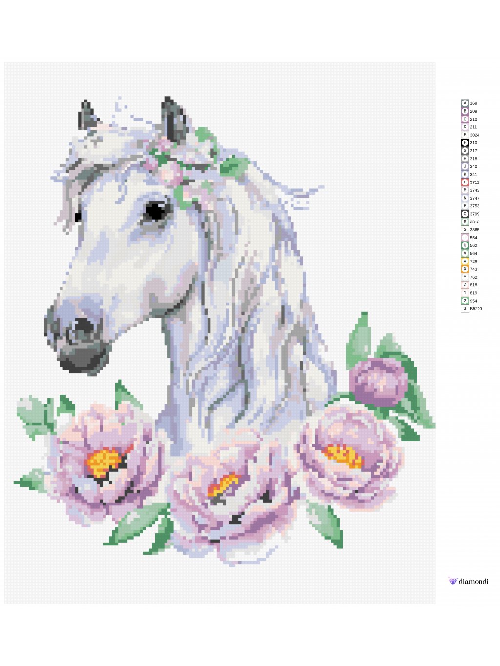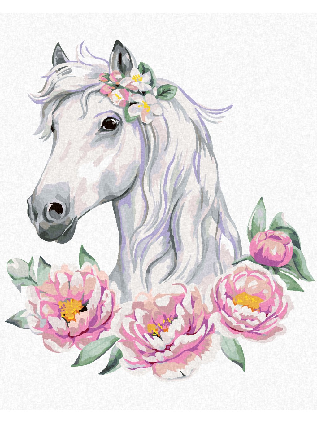 Diamantové maľovanie - BIELÝ KÔN S PIVÓNIAMI