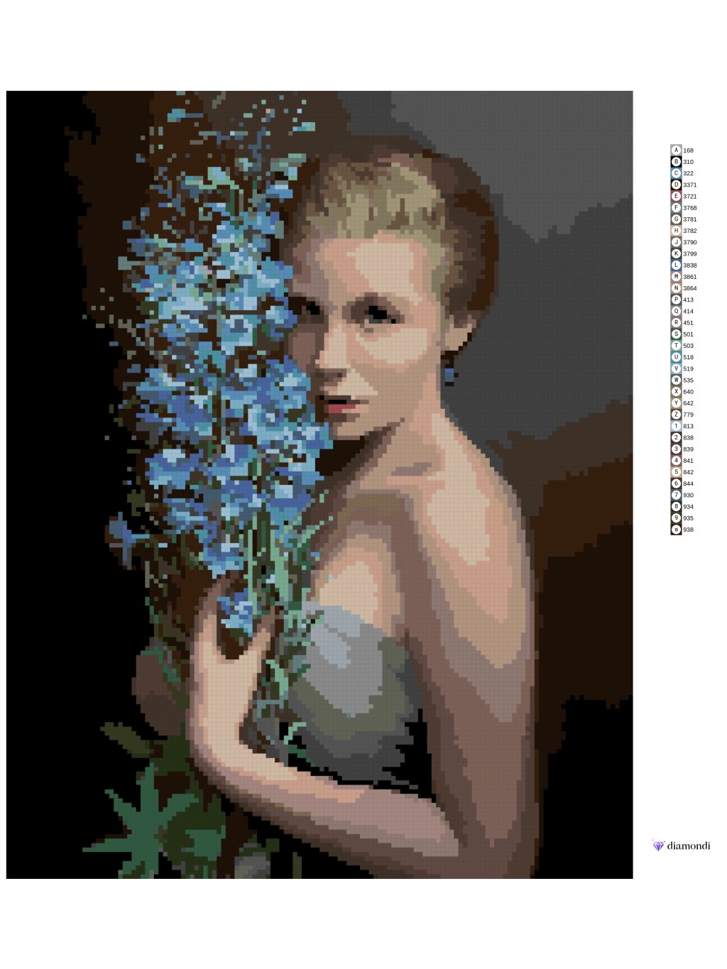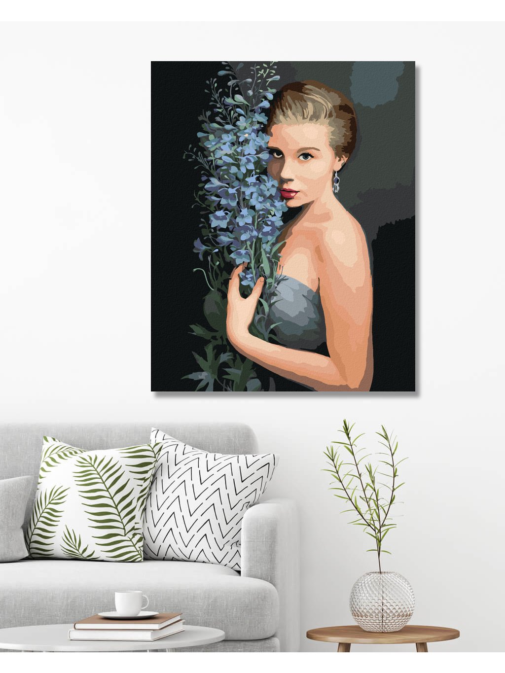 Diamantové maľovanie - BLONĎATÁ ŽENA A MODRÉ KVETY (PIETER WAGEMANS)