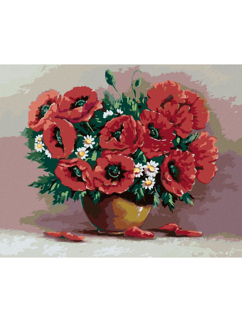 Diamantové maľovanie - ČERVENÉ KVETY V HNEDEJ VÁZE