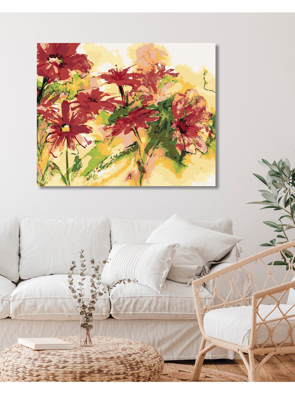 Diamantové maľovanie - ČERVENÉ KVITNÚCE KVETY