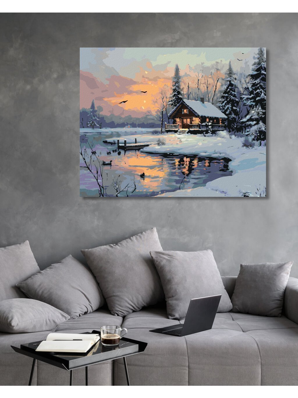 Diamantové maľovanie - CHATA S MÓLOM PRI RIKE V ZIME
