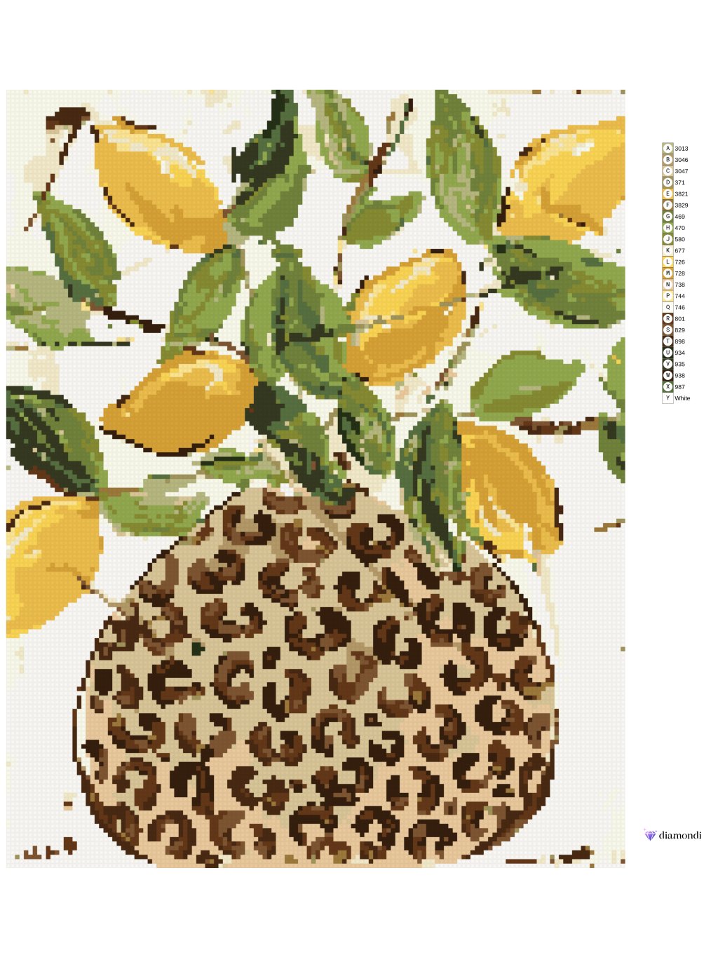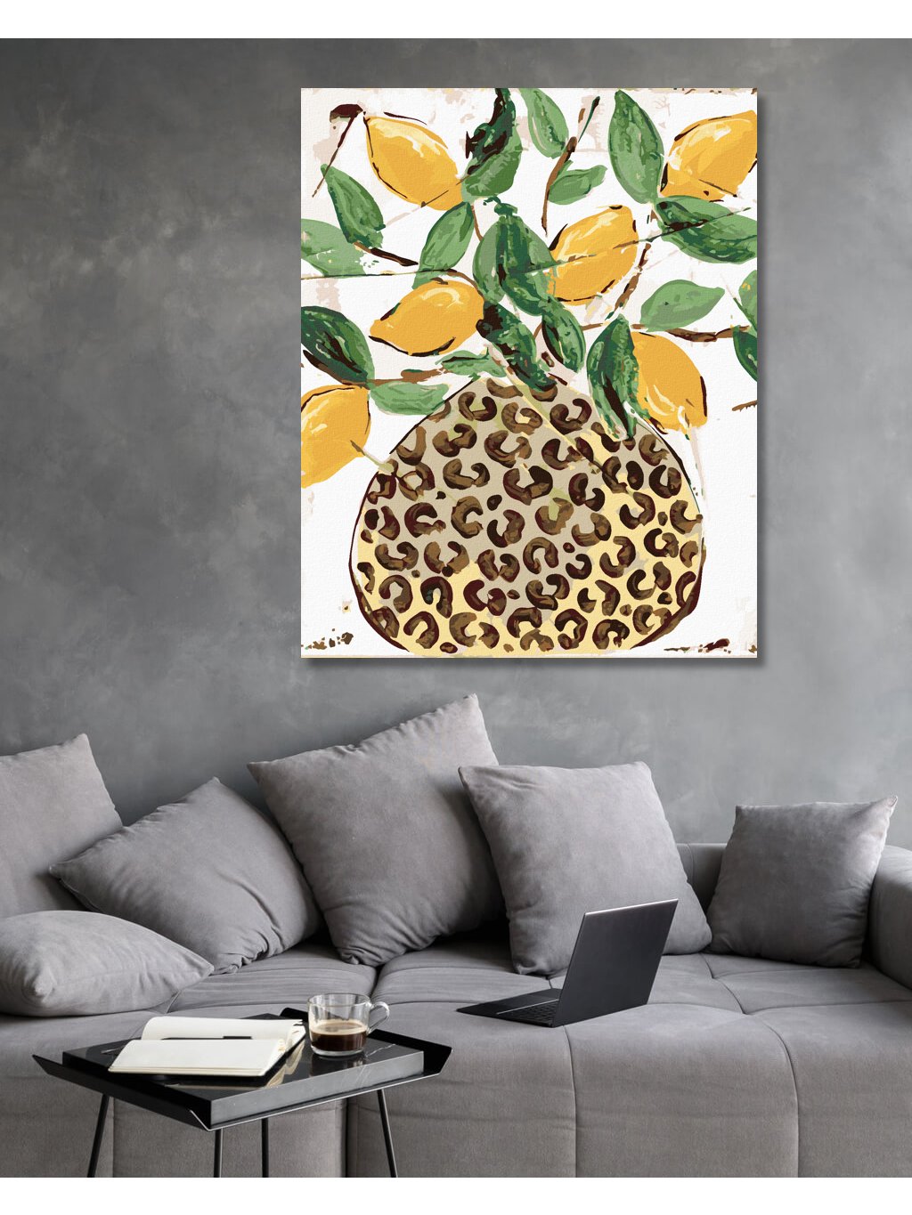 Diamantové maľovanie - CITRONY V LEOPARDEJ VÁZE (HALEY BUSH)