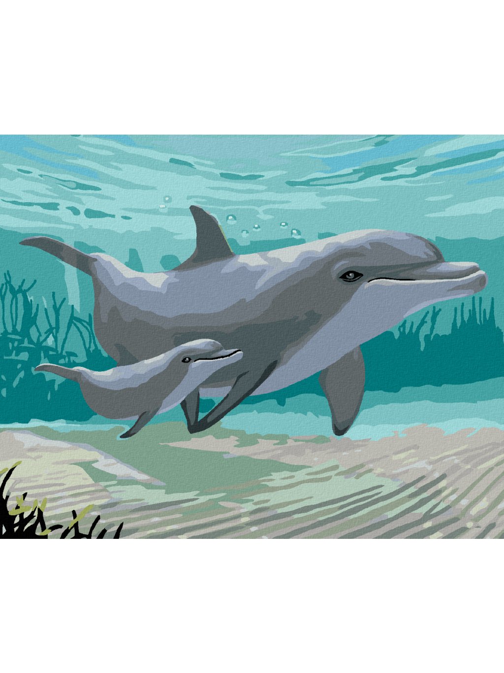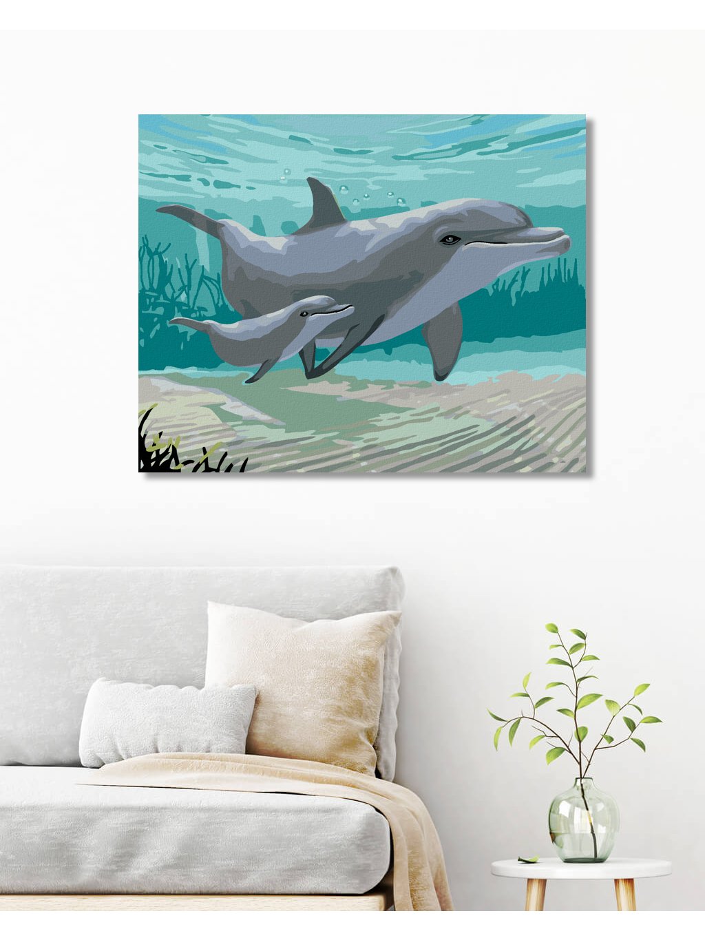 Diamantové maľovanie - DELFÍNY (ROBERT JOHNSON) (Rámovanie bez rámu a bez vypnutia plátna, Rozmer 40x50 cm)