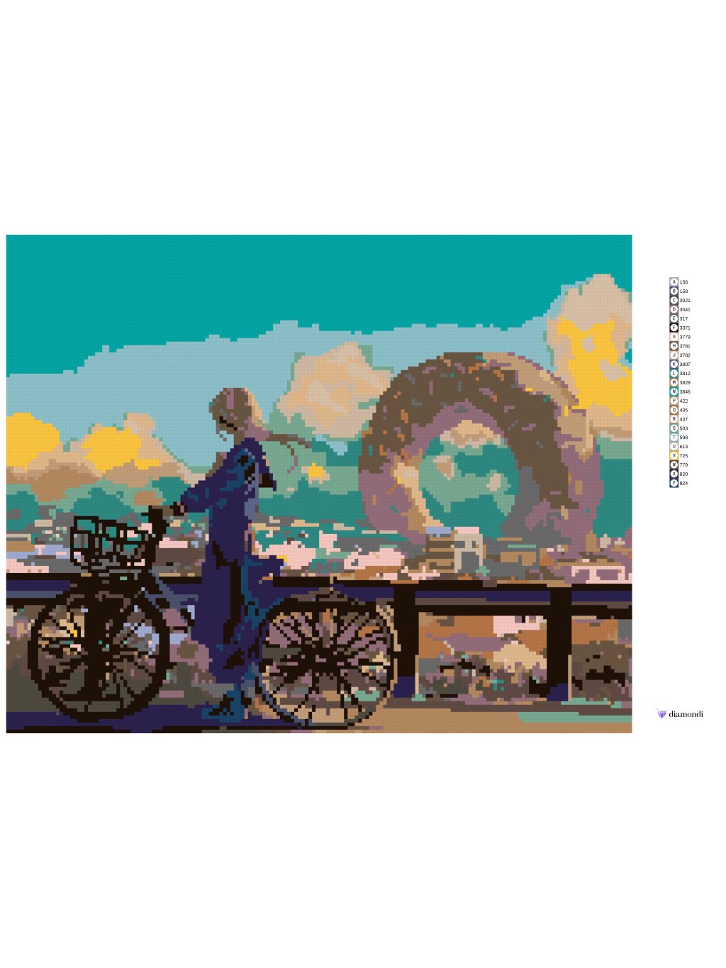 Diamantové maľovanie - DIEVČA NA BICYKLI