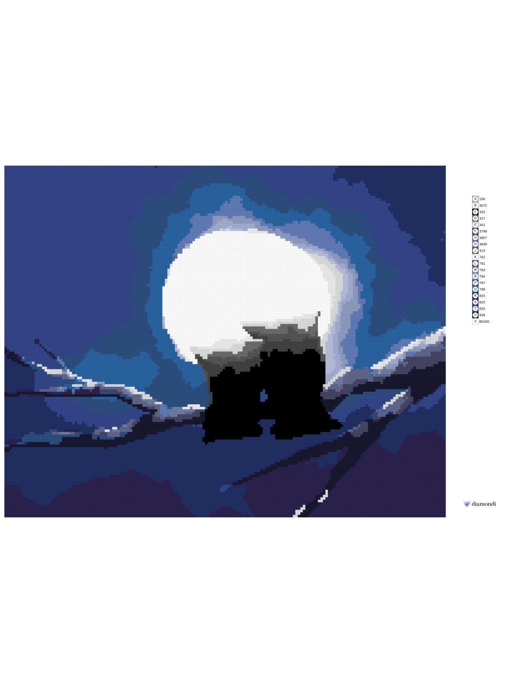 Diamantové maľovanie - DVE SOVY A ŽIARIACI MESIAC