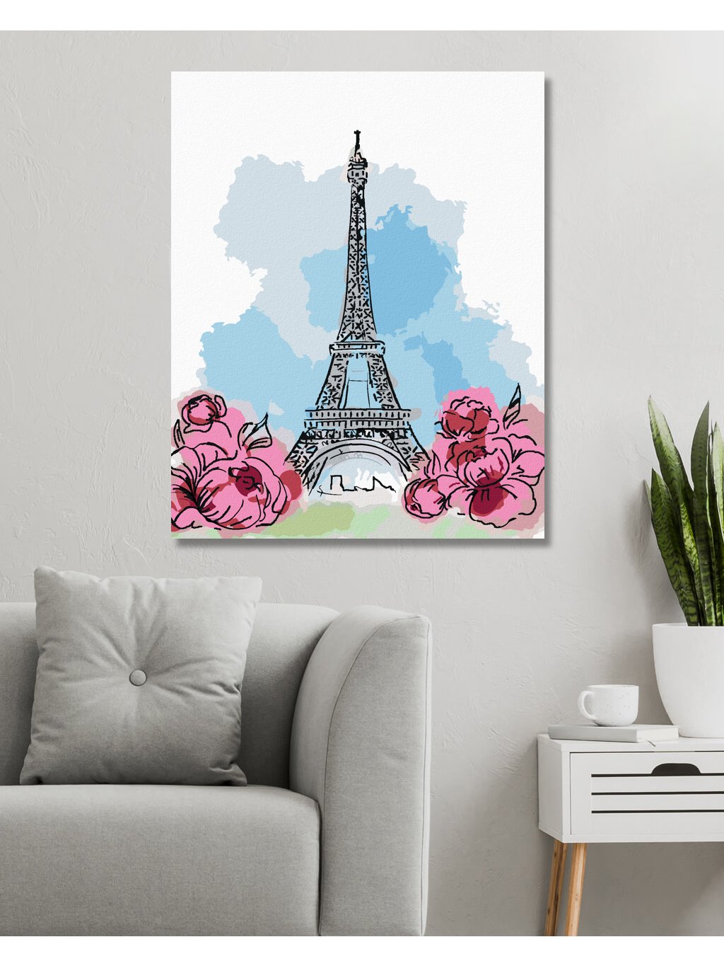 Diamantové maľovanie - EIFFELOVA VEŽA V PARÍŽI S RUŽOVÝMI KVETINAMI