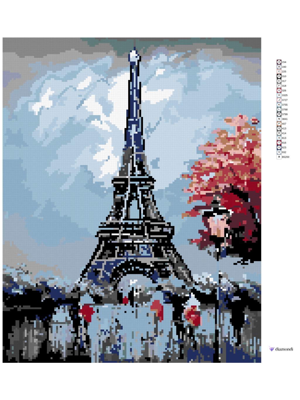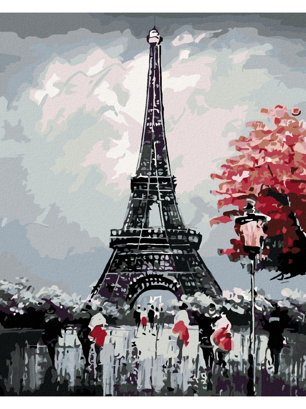 Diamantové maľovanie - EIFFELOVKA S ČERVENÝM STROMOM