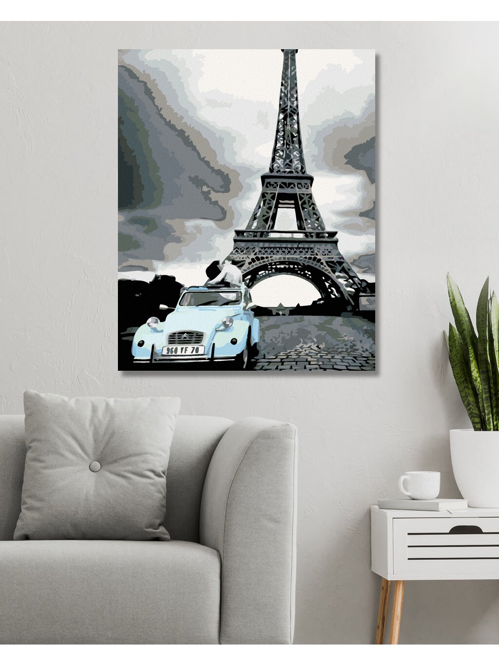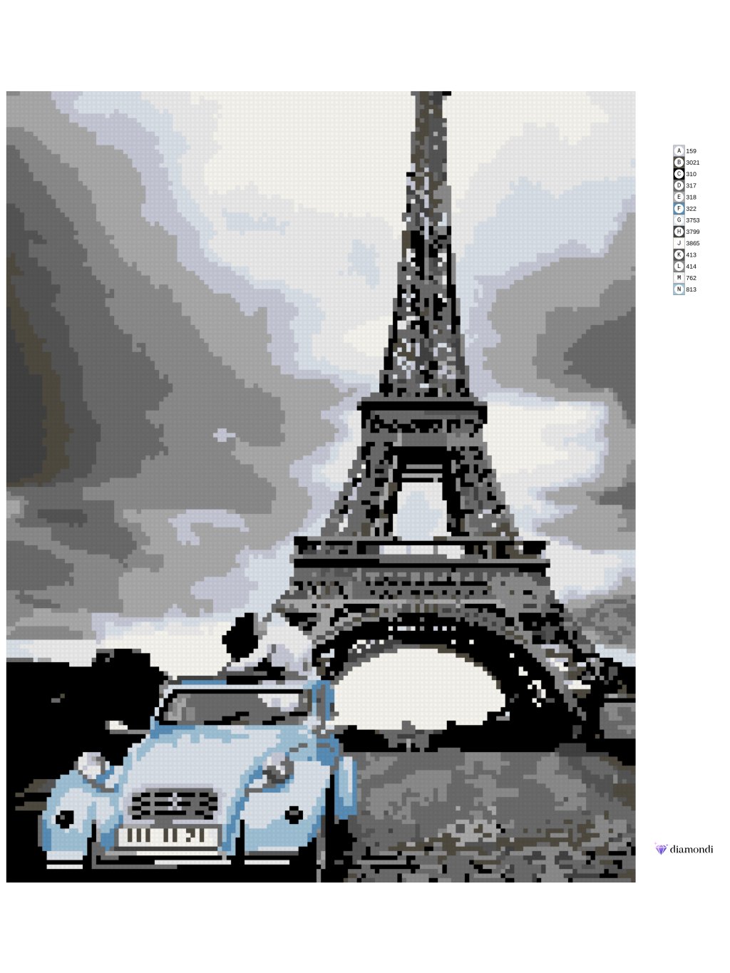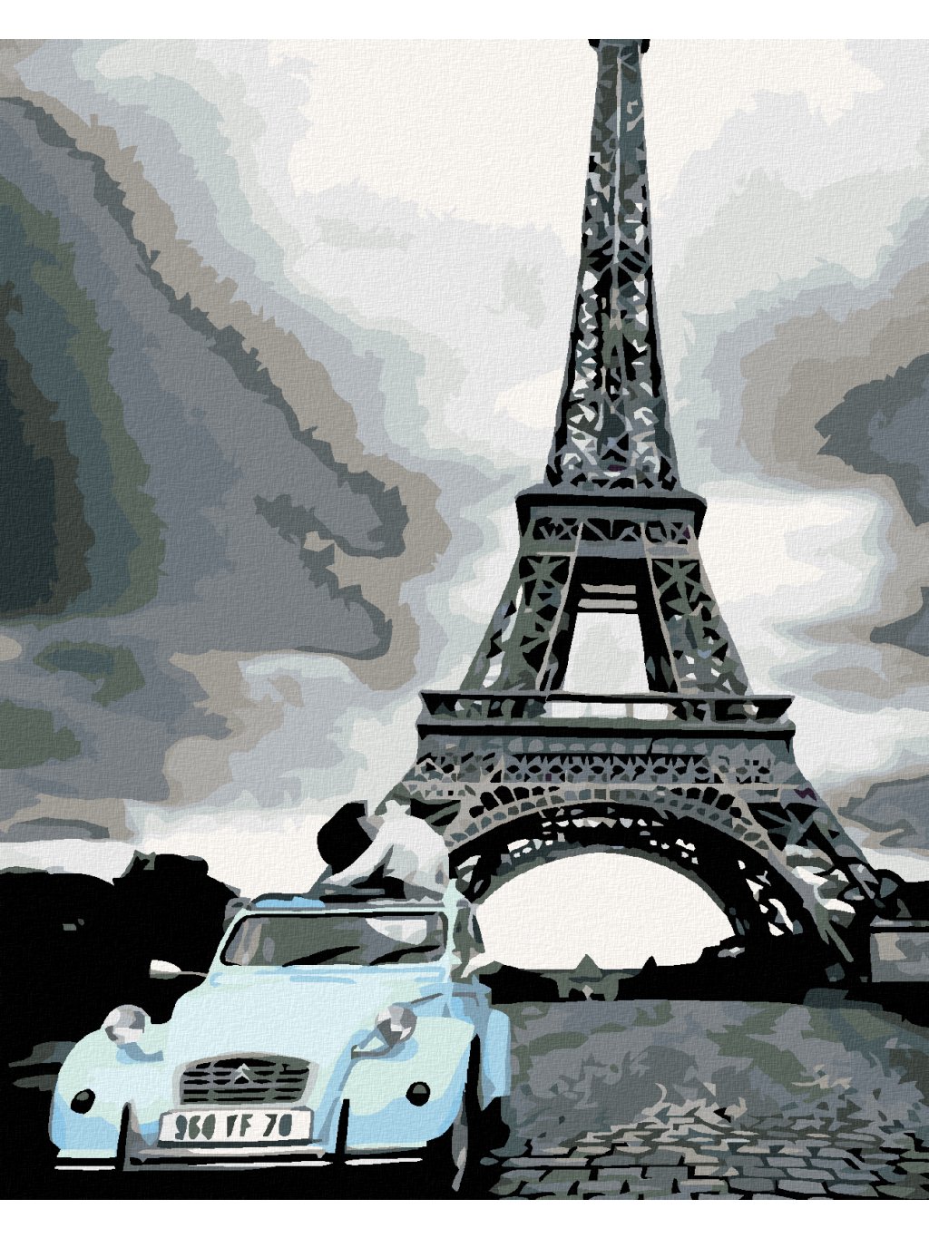 Diamantové maľovanie - EIFFELOVKA S MODRÝM AUTOM