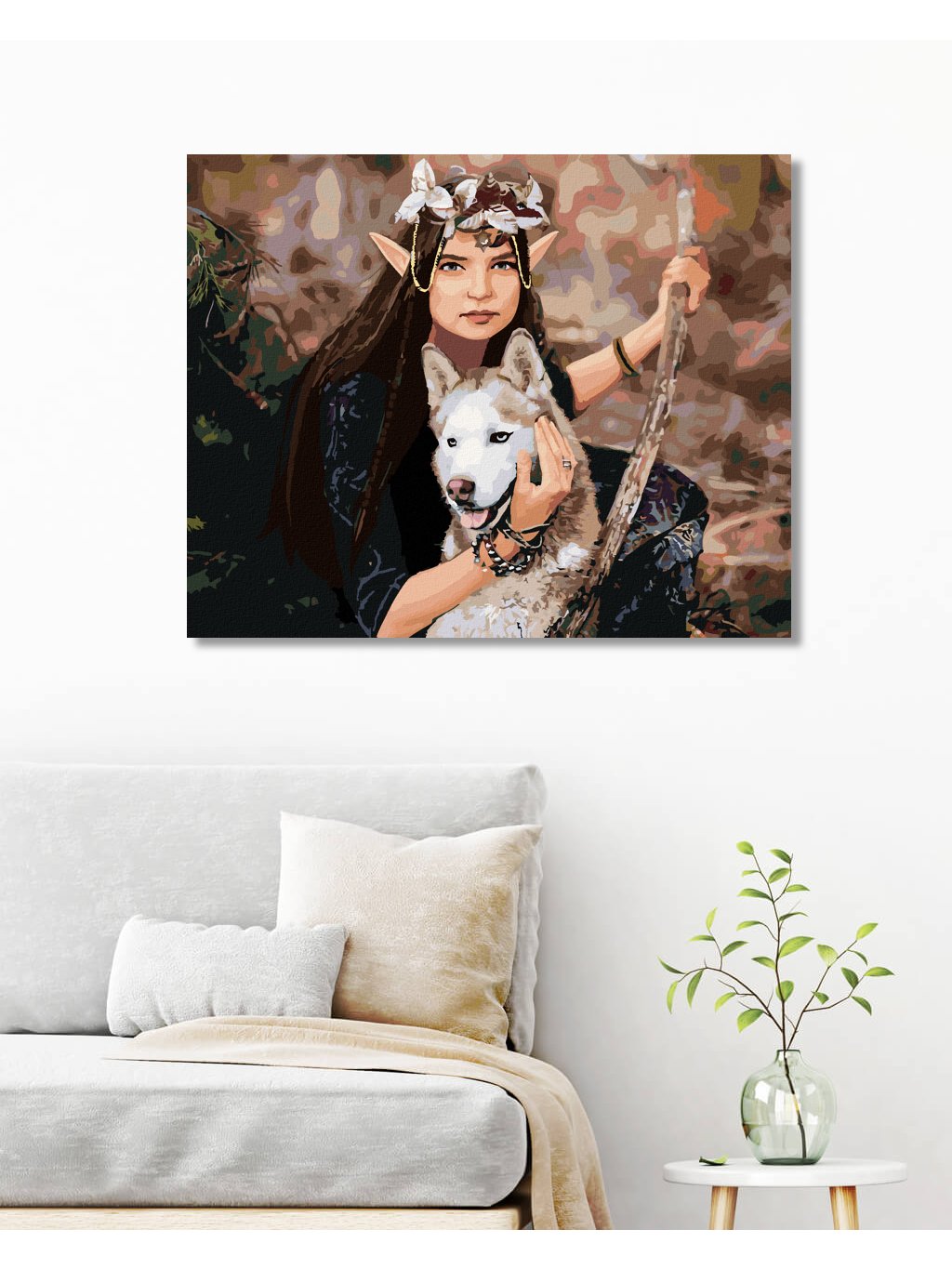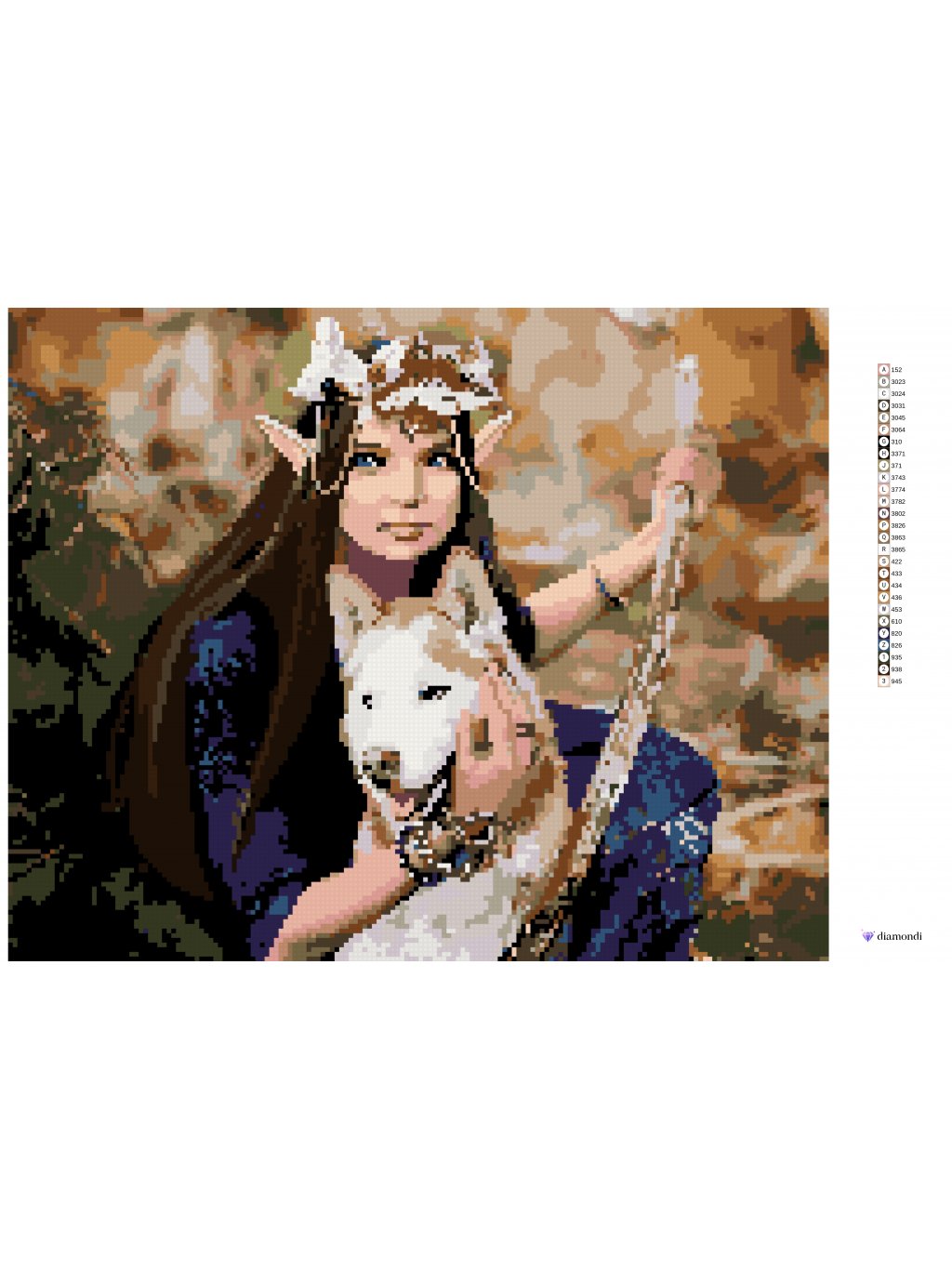 Diamantové maľovanie - ELFSKÁ PRINCEZNÁ A VLK