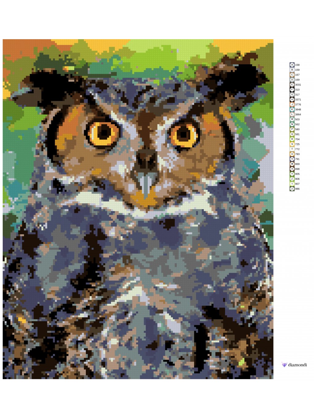 Diamantové maľovanie - FAREBNÁ SOVA II