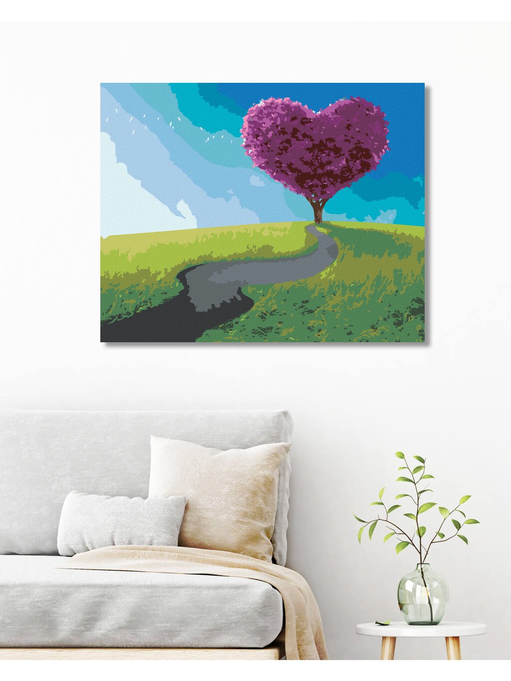 Diamantové maľovanie - FIALOVÝ STROM V TVARE SRDCA