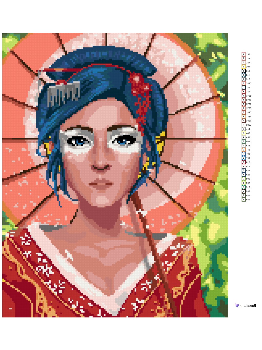 Diamantové maľovanie - GEJŠA V KIMONE S DÁŽDNIKOM