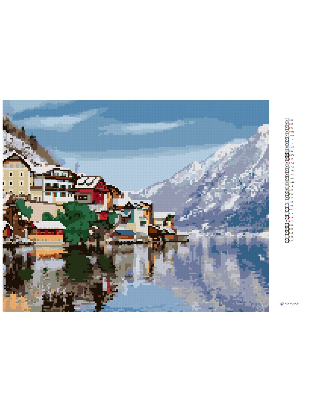 Diamantové maľovanie - HALLSTATT PRI JAZERE V ALPÁCH
