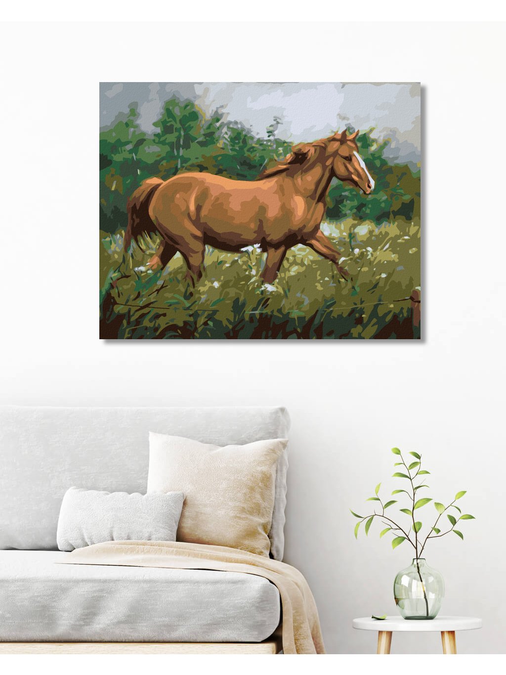 Diamantové maľovanie - HNEDÝ KÔŇ NA PASTVE V LESE