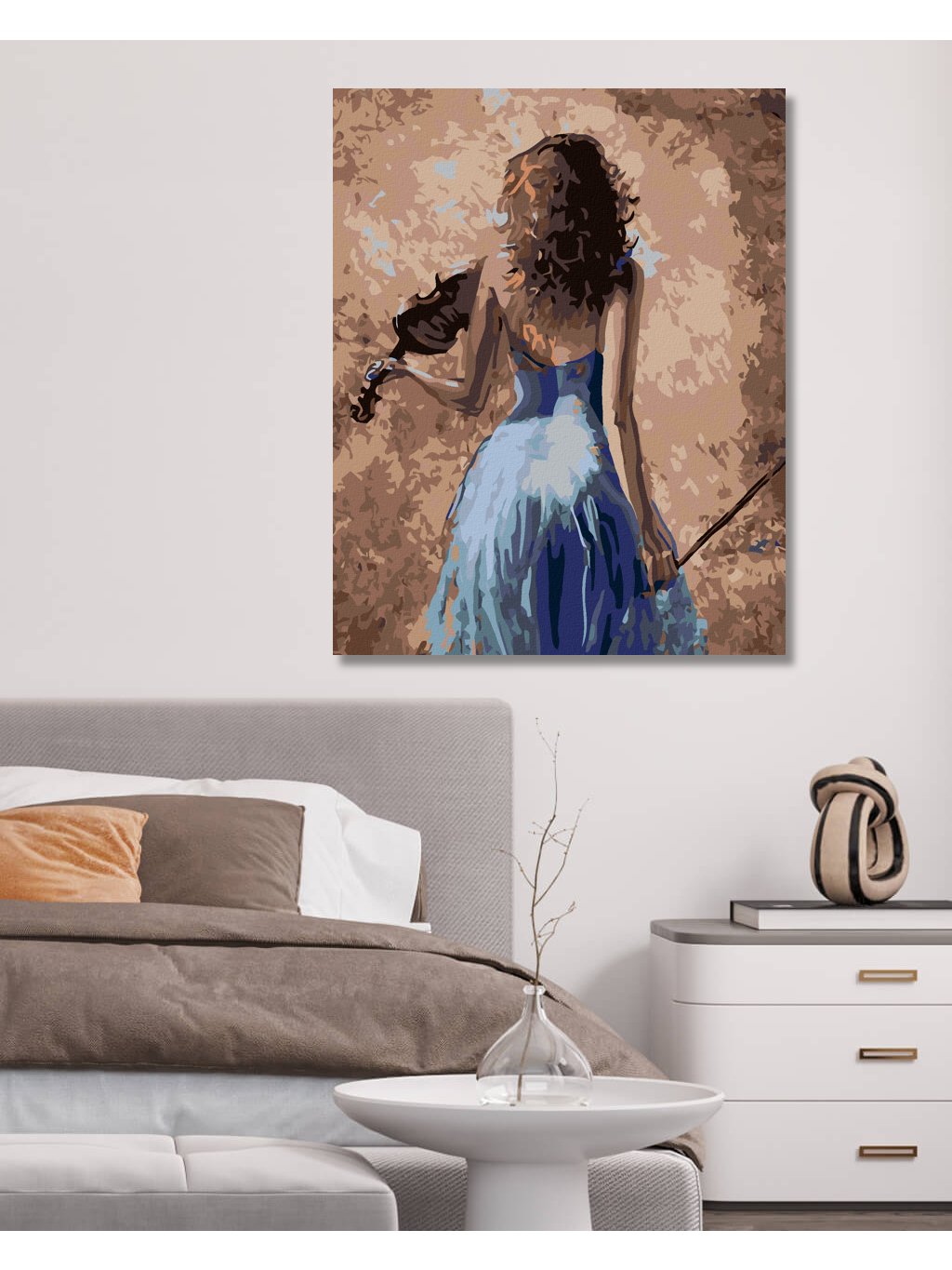 Diamantové maľovanie - HUSLISTKA V MODRÝCH ŠATÁCH