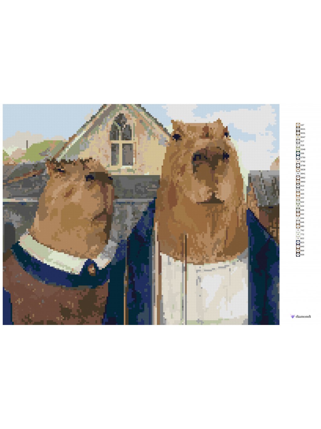 Diamantové maľovanie - KAPYBARY AMERICKÁ GOTIKA
