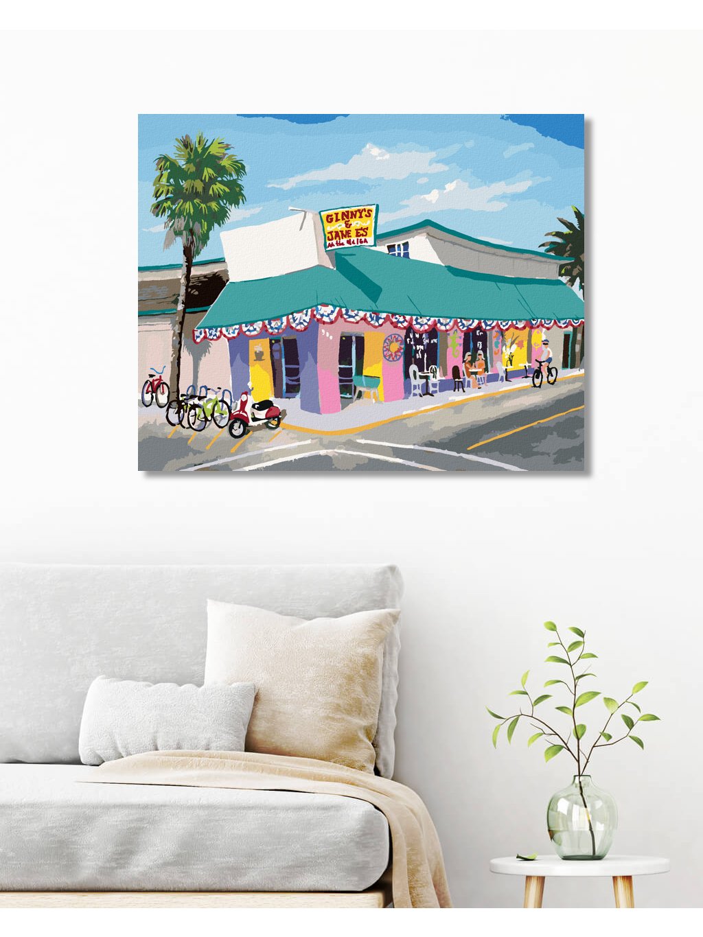 Diamantové maľovanie - KAVIAREŇ PRI PLÁŽI (ROBERT JOHNSON)