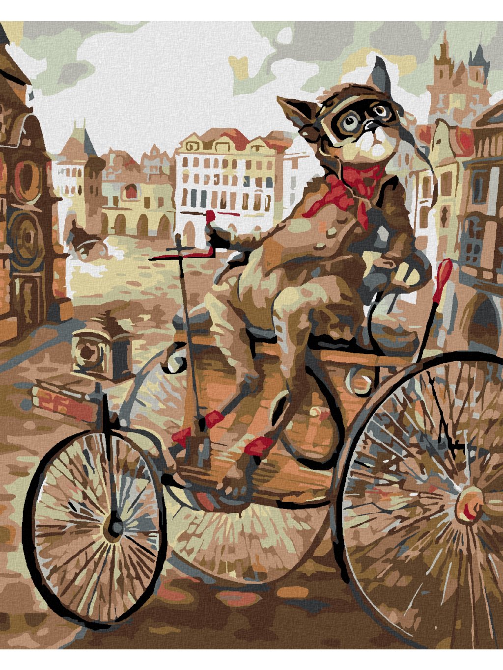 Diamantové maľovanie - KOCÚR NA TROJKOLKE