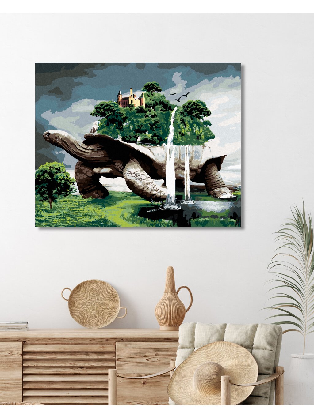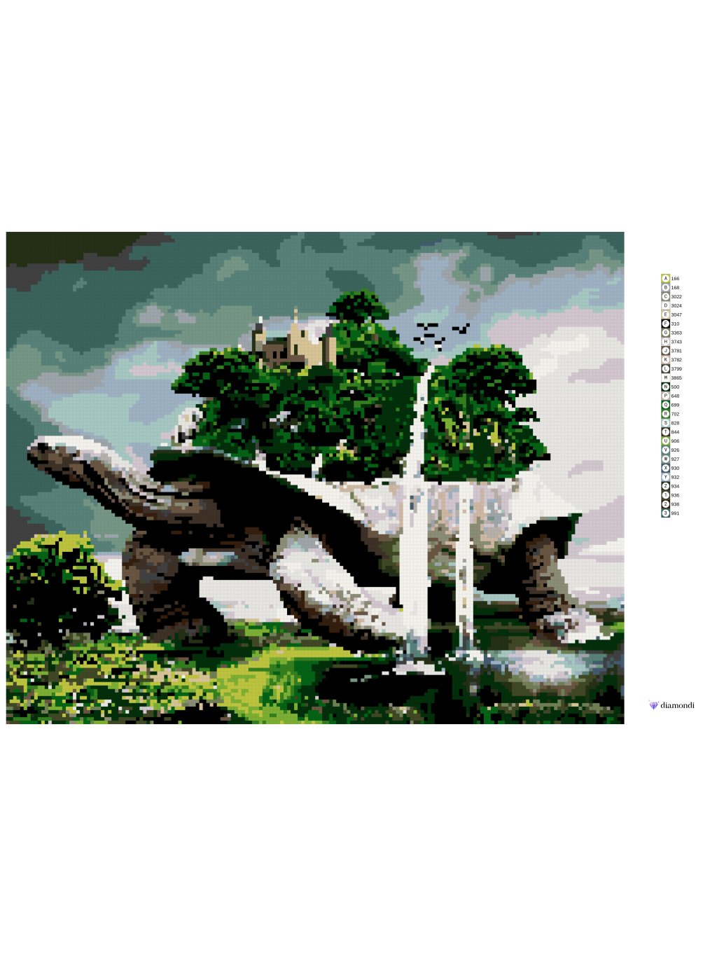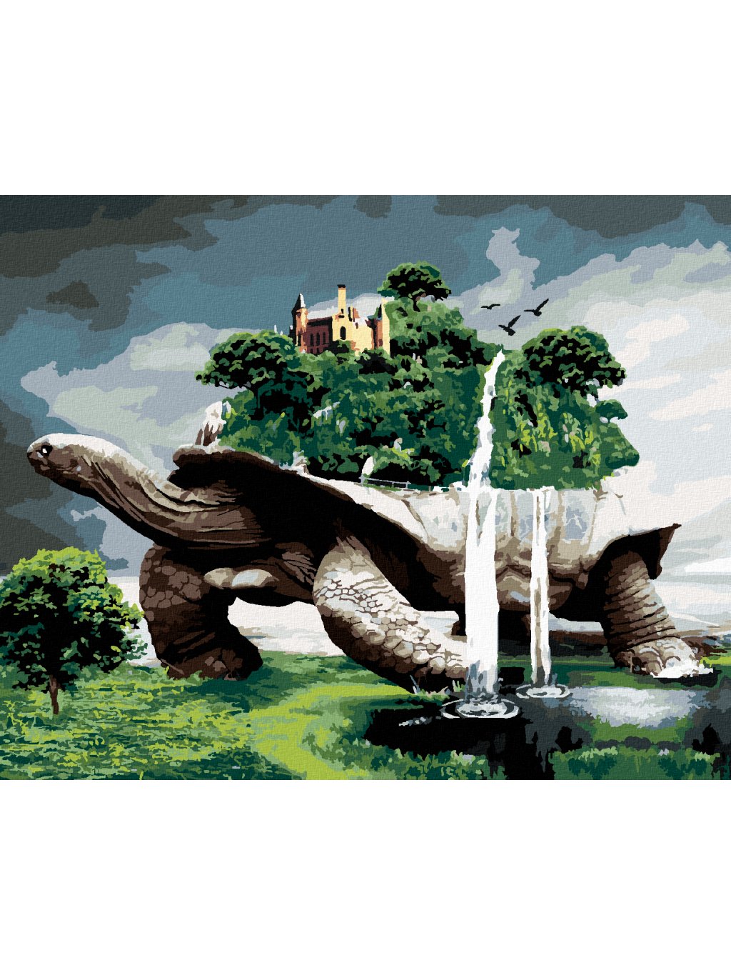 Diamantové maľovanie - KORYTNAČKA S LESOM A VODOPÁDMI