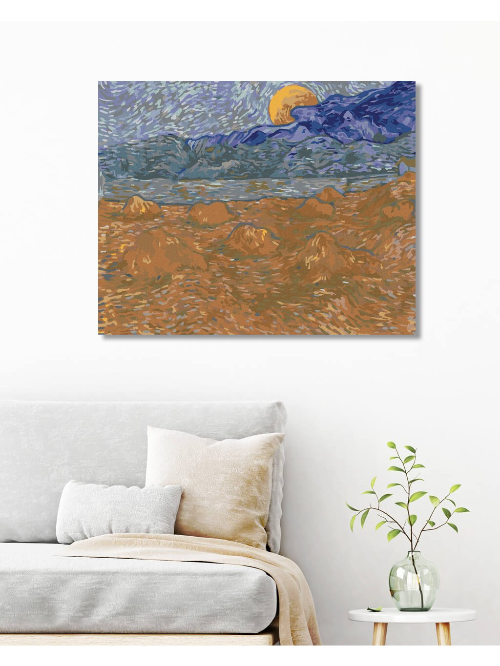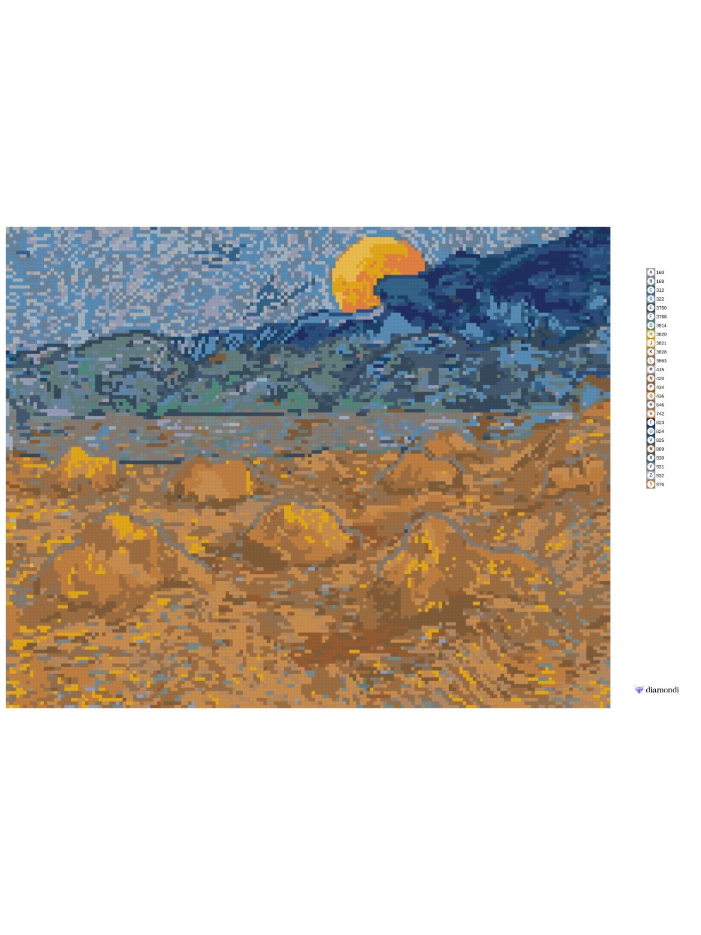 Diamantové maľovanie - KRAJINA S PŠENIČNÝMI SNOPMI A VYCHÁDZAJÚCIM MESIACOM (VINCENT VAN GOGH)