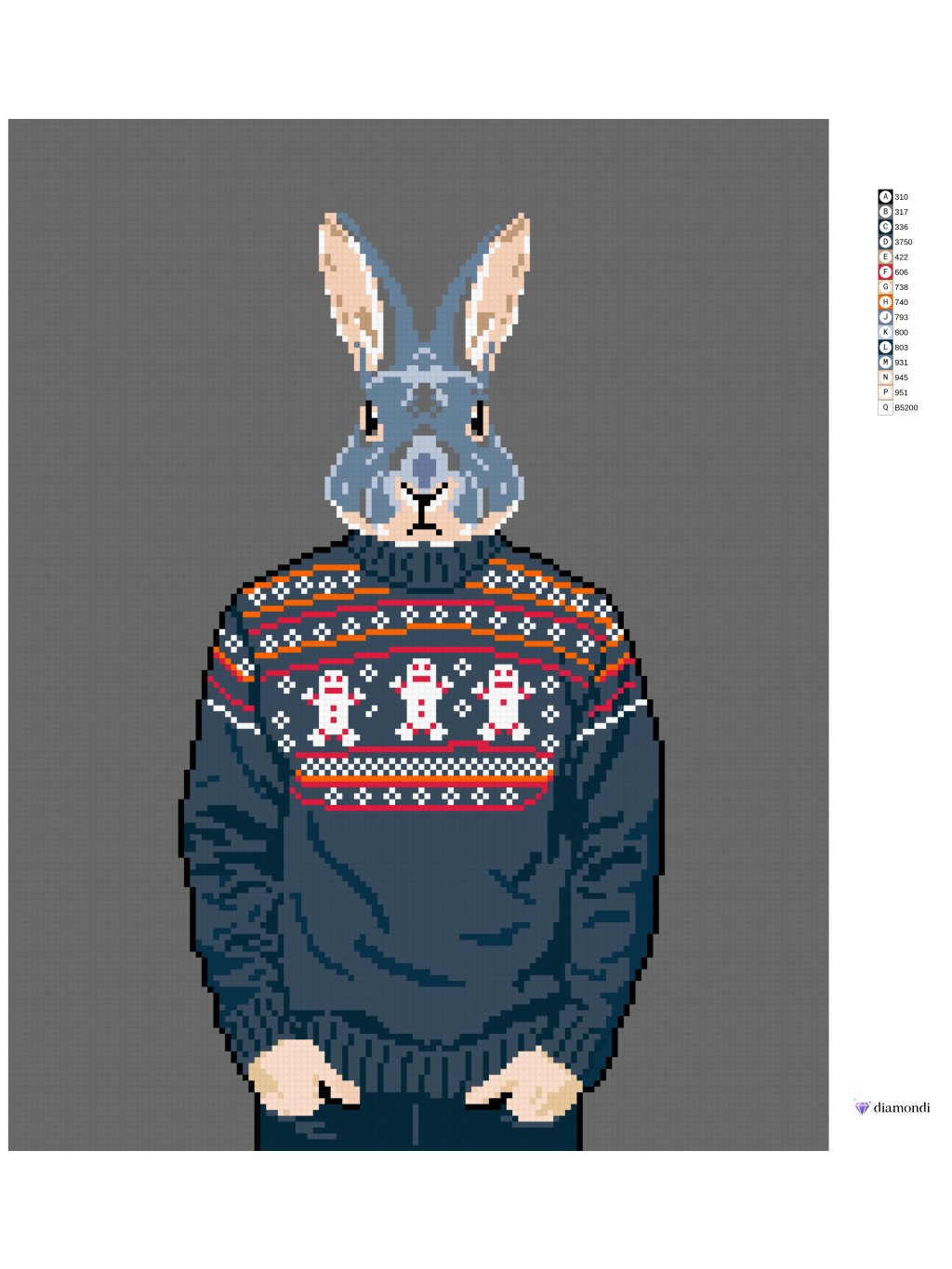 Diamantové maľovanie - KRÁLIK V ŠEDOM SVETRI