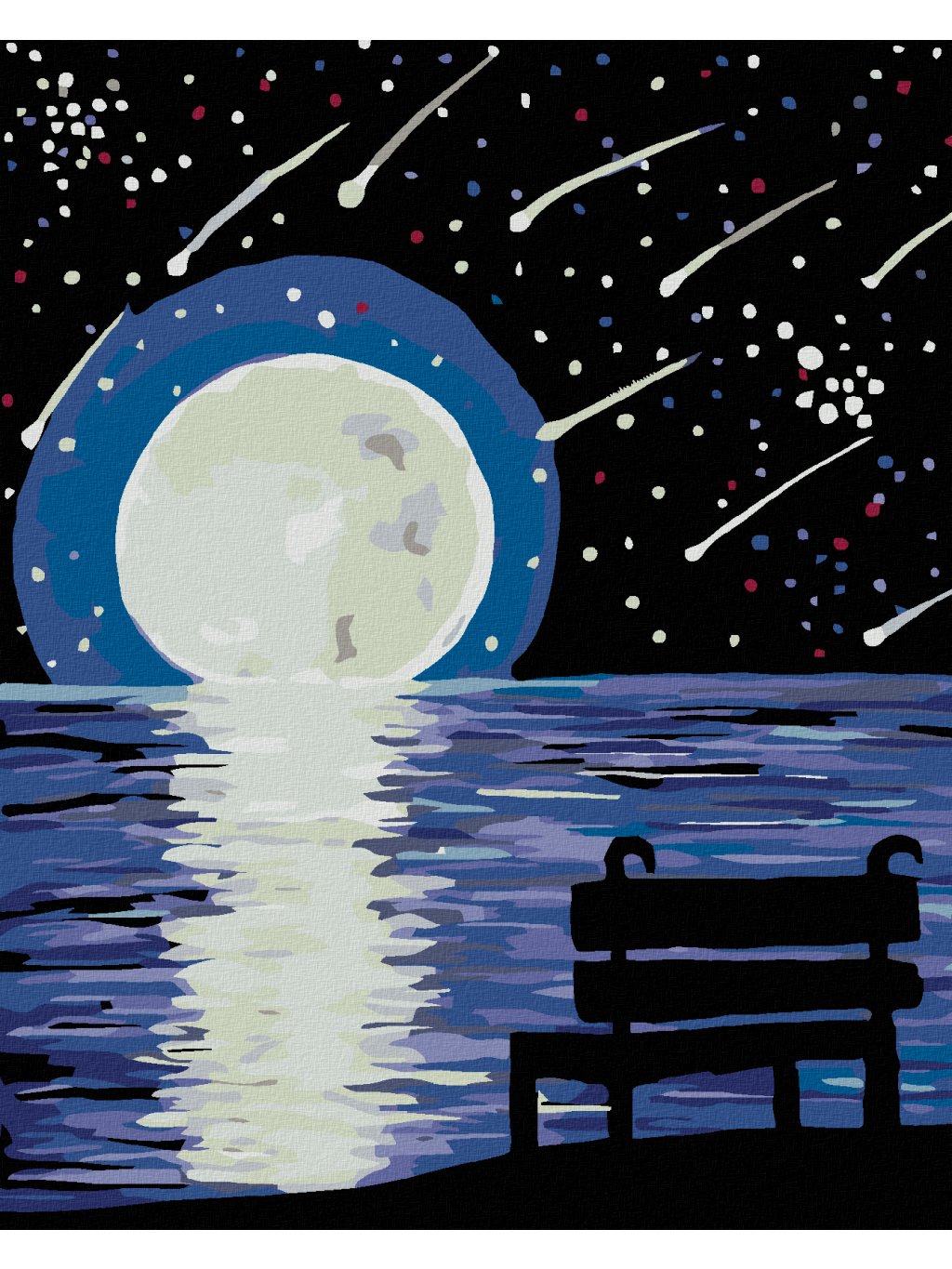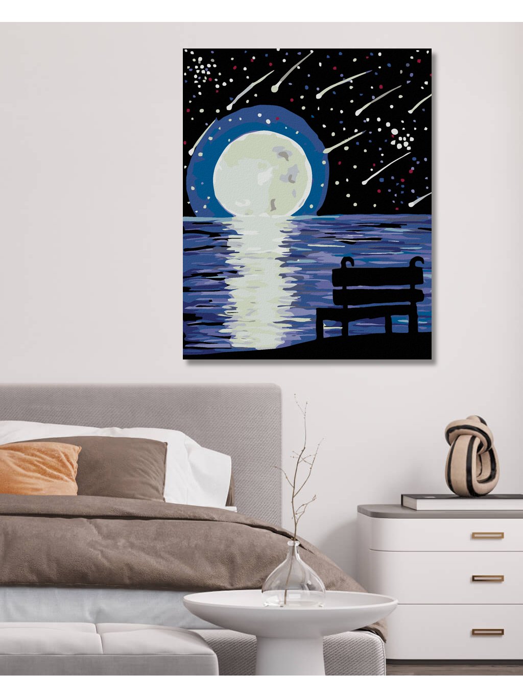 Diamantové maľovanie - LAVIČKA MESIAC A PERSEIDY