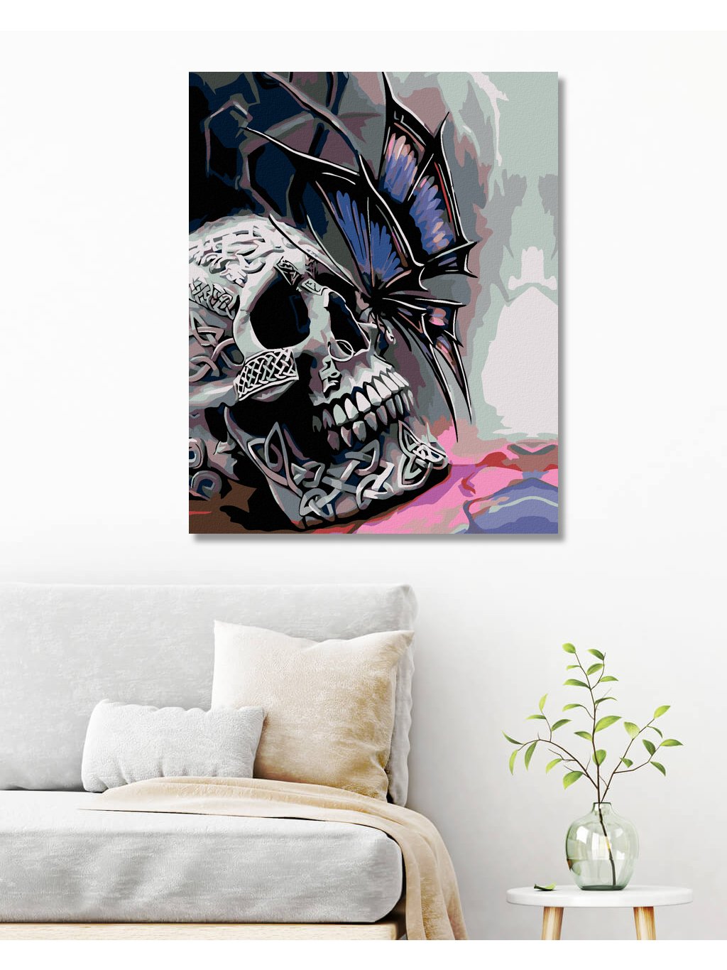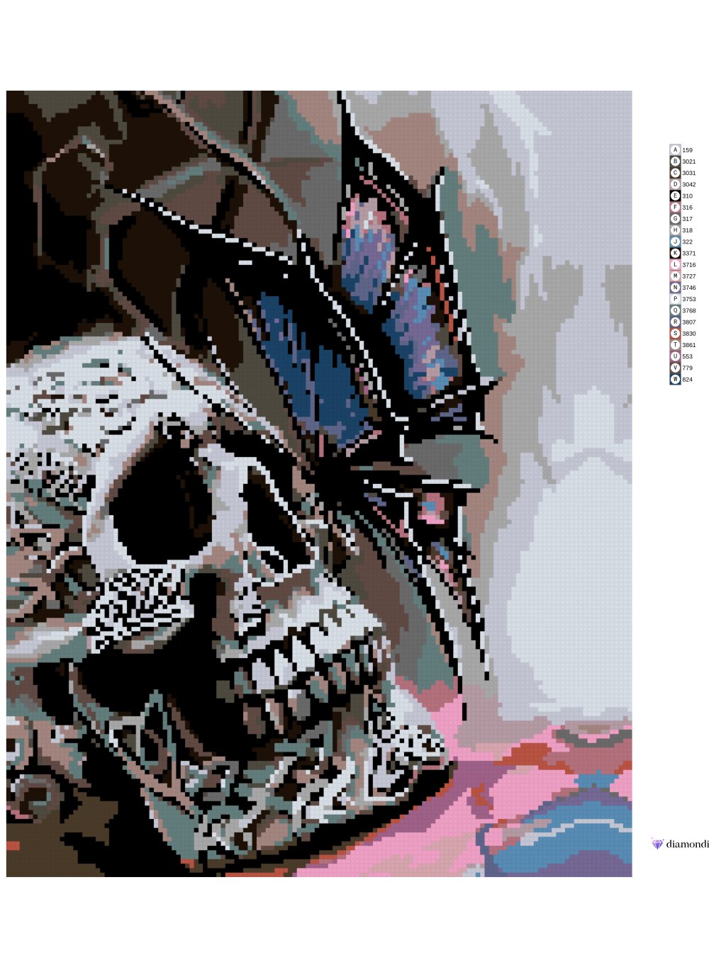 Diamantové maľovanie - LEBKA A MOTÝĽ