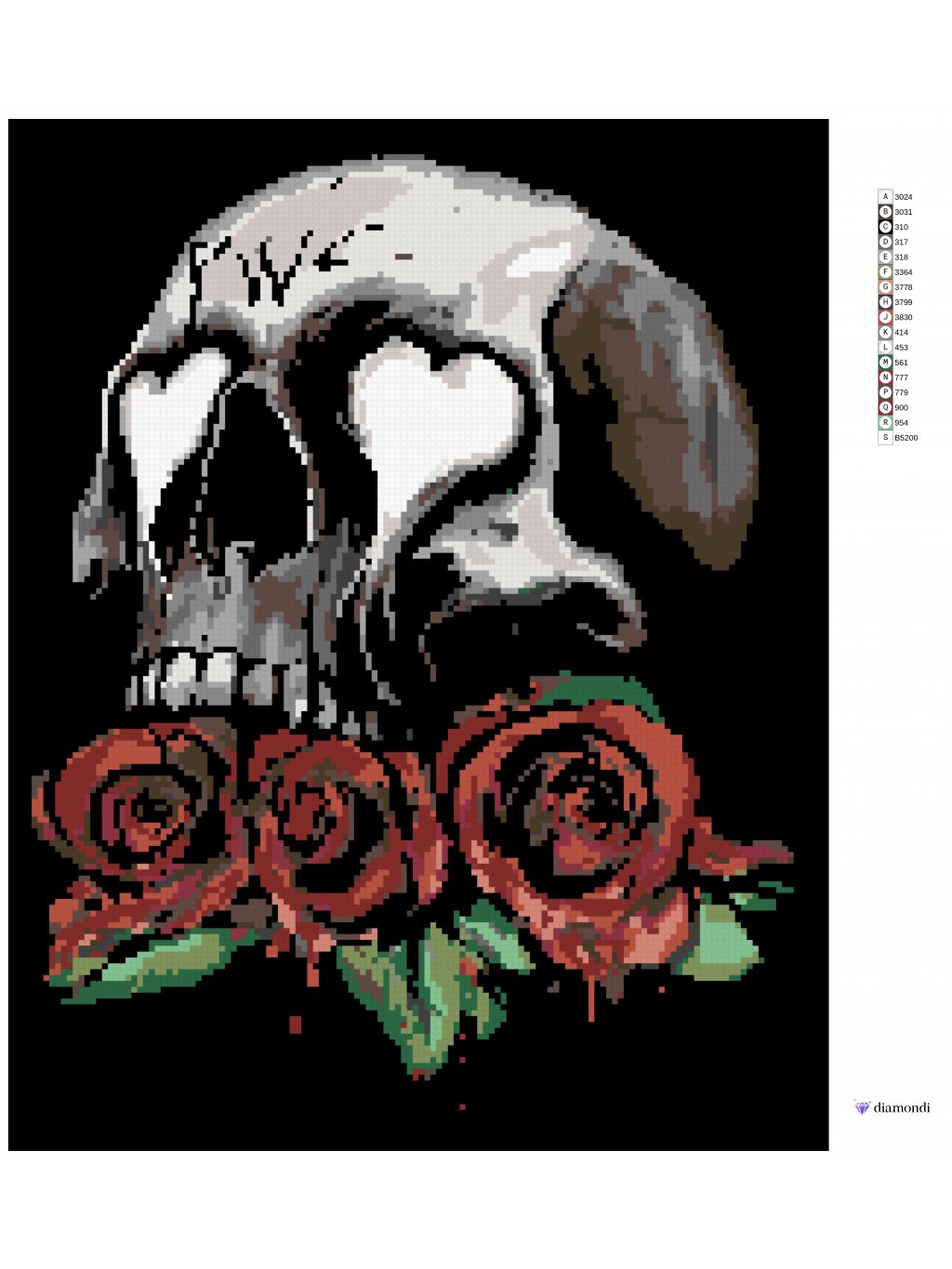 Diamantové maľovanie - LEBKA A TRI RUDÉ RUŽE