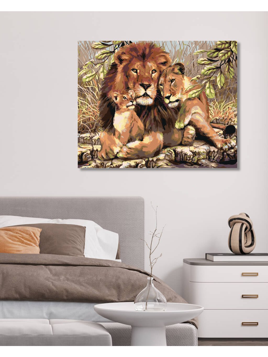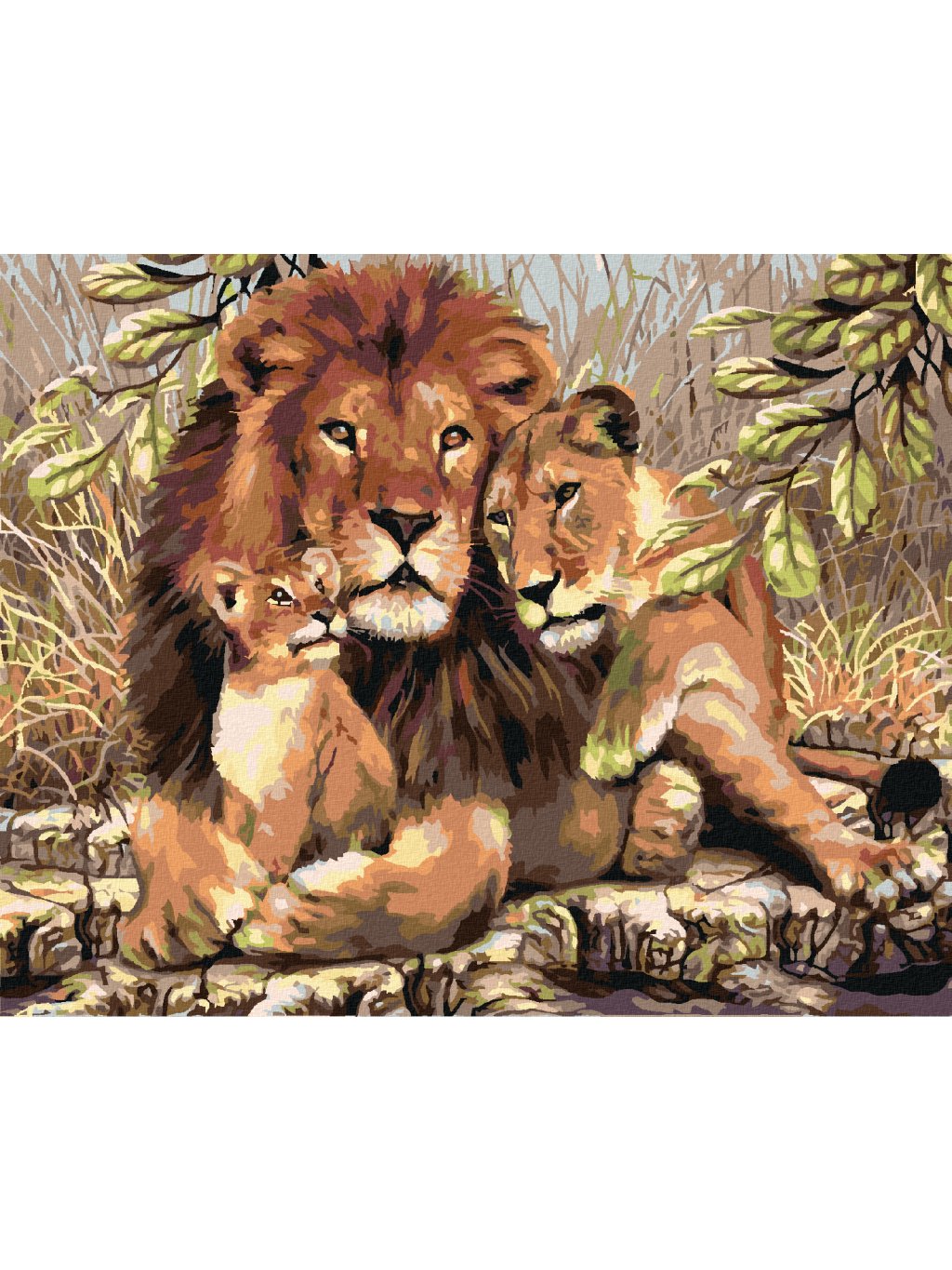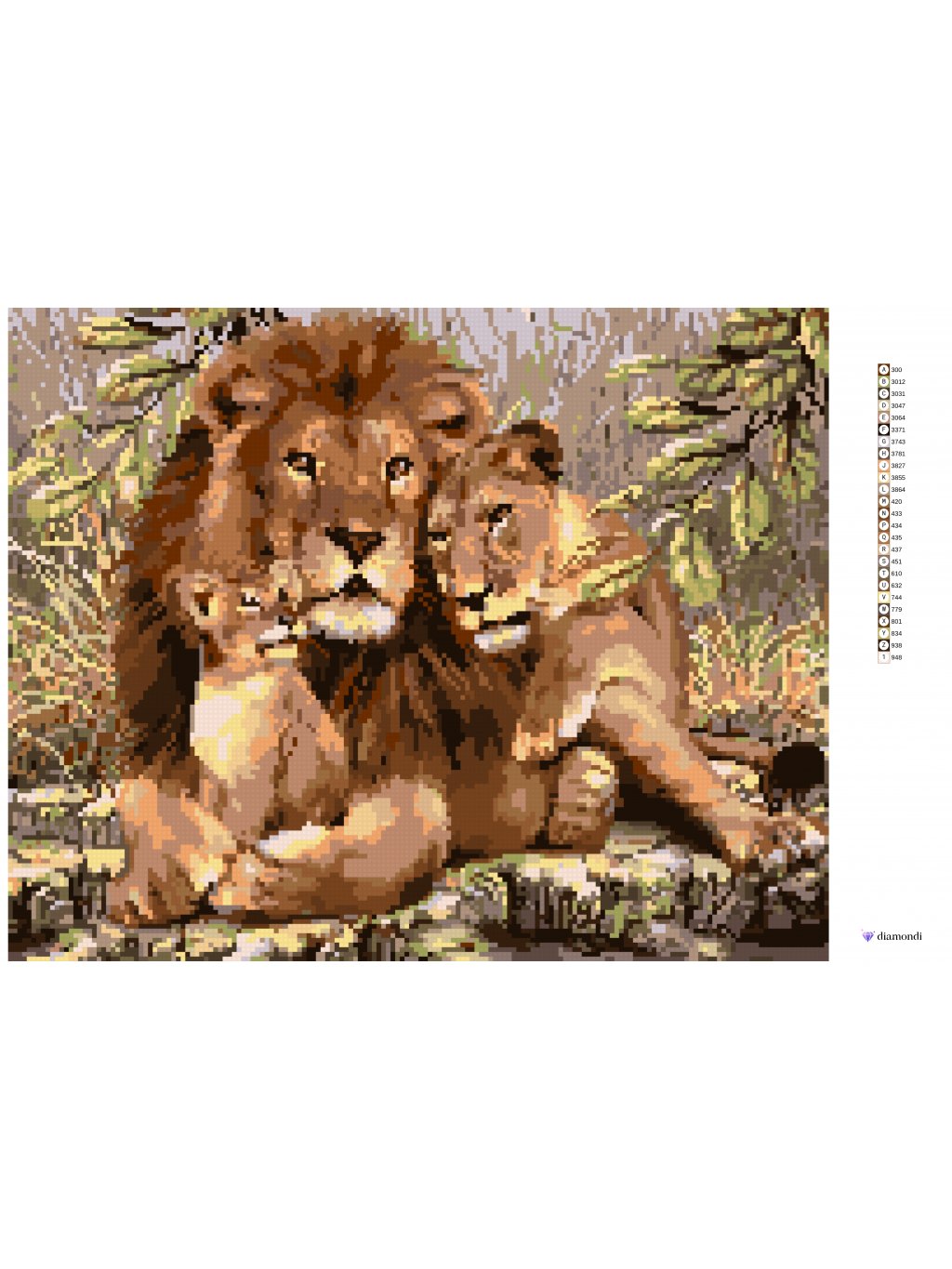 Diamantové maľovanie - LEV S LEVICOU A LEVÍČATKOM