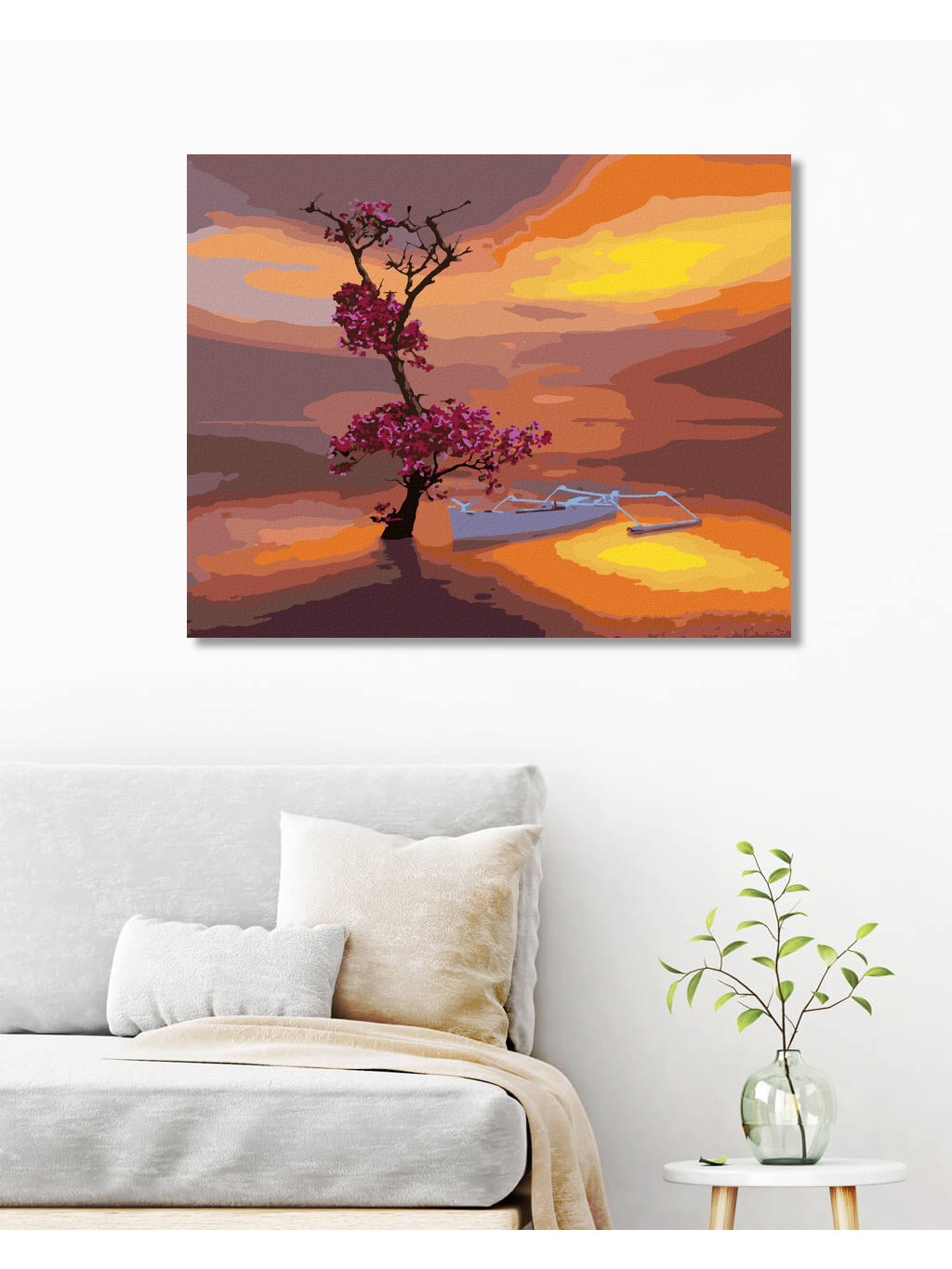 Diamantové maľovanie - LOĎKA S NÁDHERNE KVITNÚCIM STROMOM