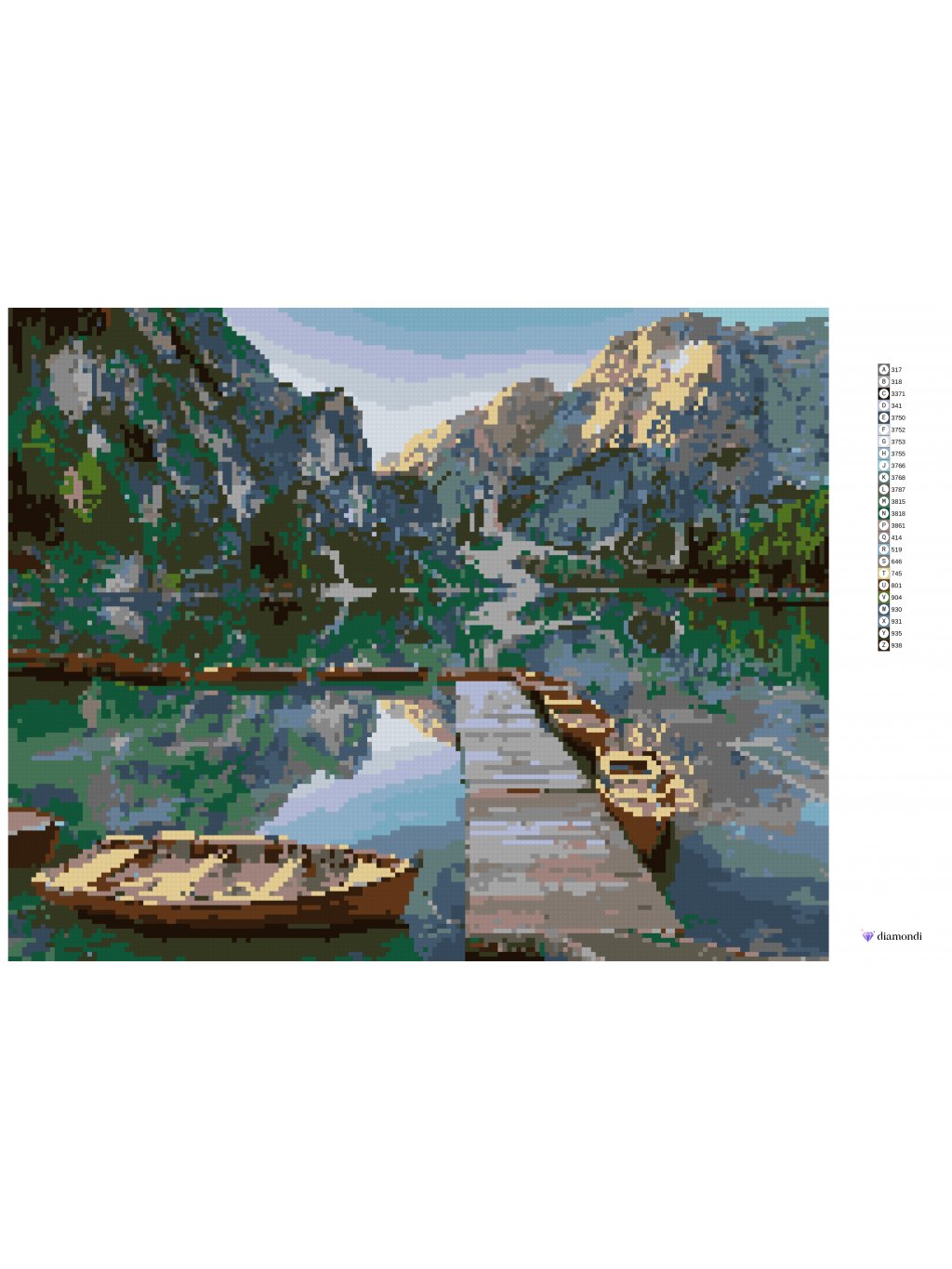 Diamantové maľovanie - LOĎKY NA HORSKOM JAZERE