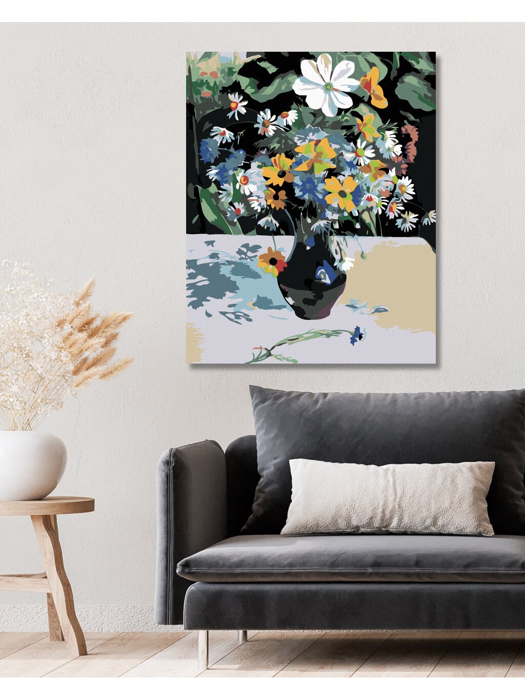 Diamantové maľovanie - LÚČNE KVETY V ČIERNEJ VÁZE