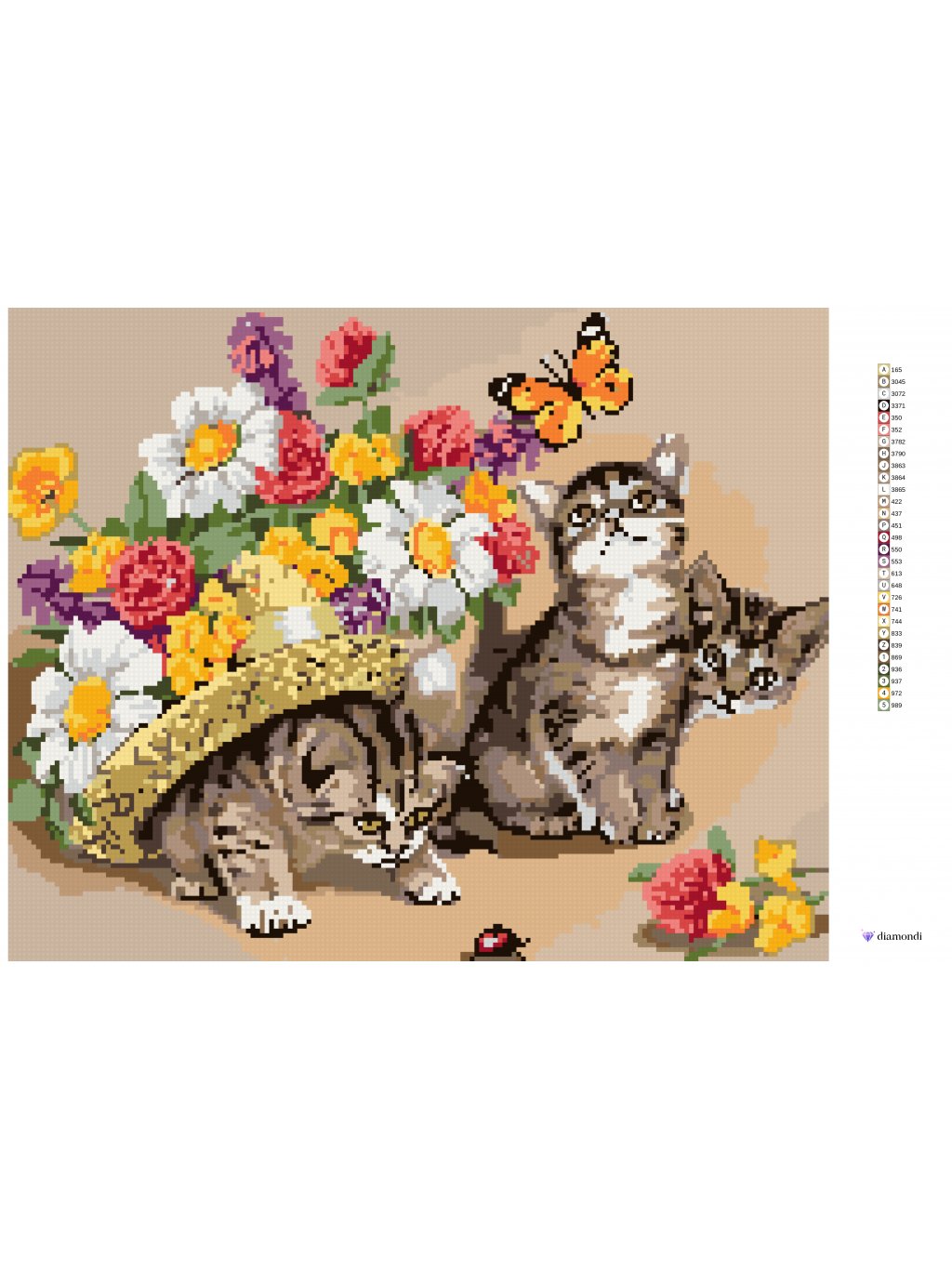 Diamantové maľovanie - MAČIATKA S KLOBÚKOM A KVETMI