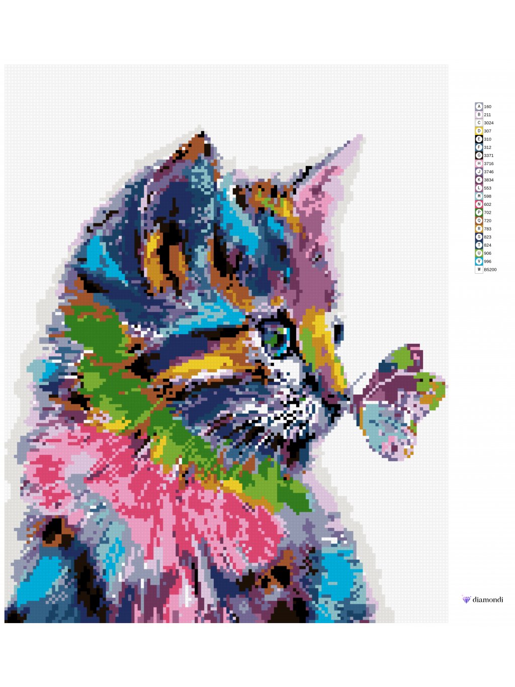 Diamantové maľovanie - MAČIČKA S MOTÝLIKOM