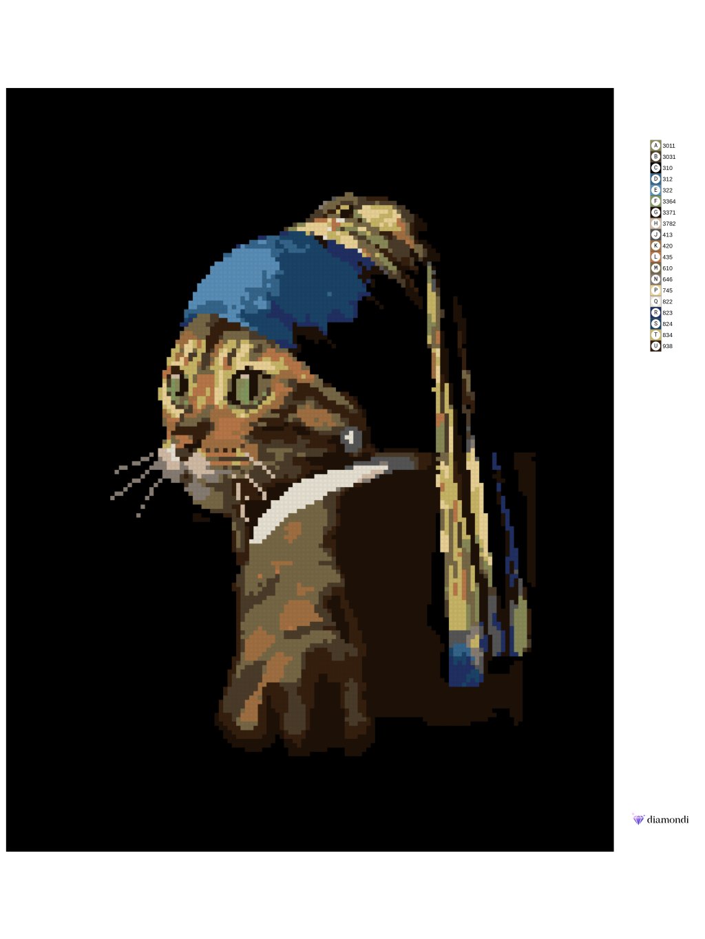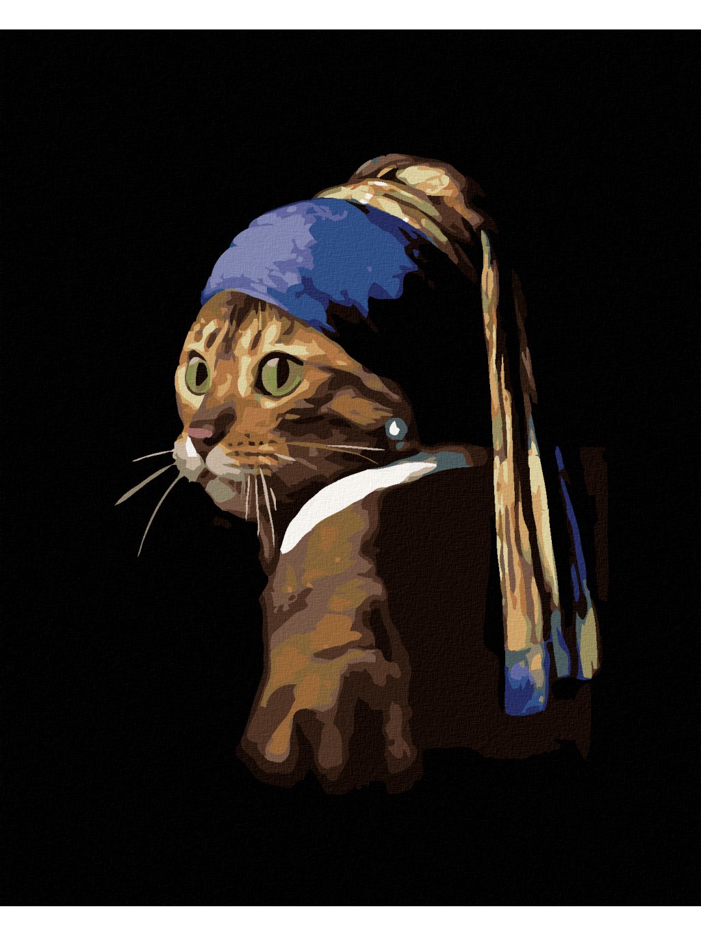 Diamantové maľovanie - MAČKA AKO DIEVČA S PERLOU