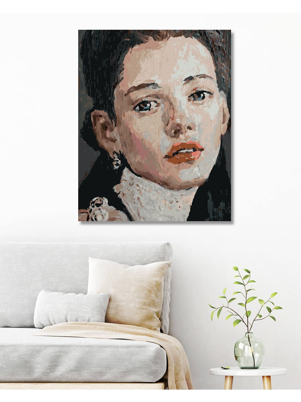 Diamantové maľovanie - MAĽOVANÁ ŽENA S PRENIKAVÝMI OČAMI