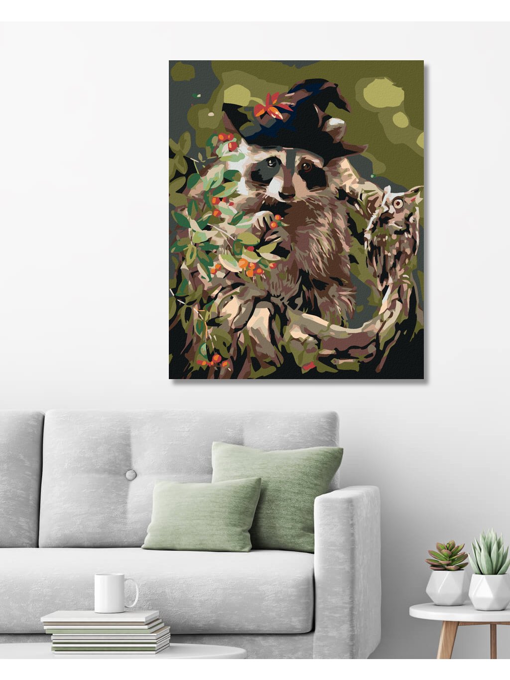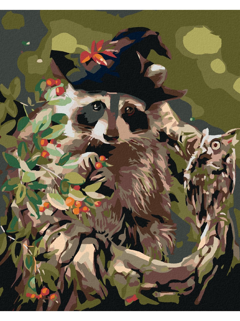 Diamantové maľovanie - MEDVEDÍK ČISTOTNÝ S KLOBÚKOM A SOVOU