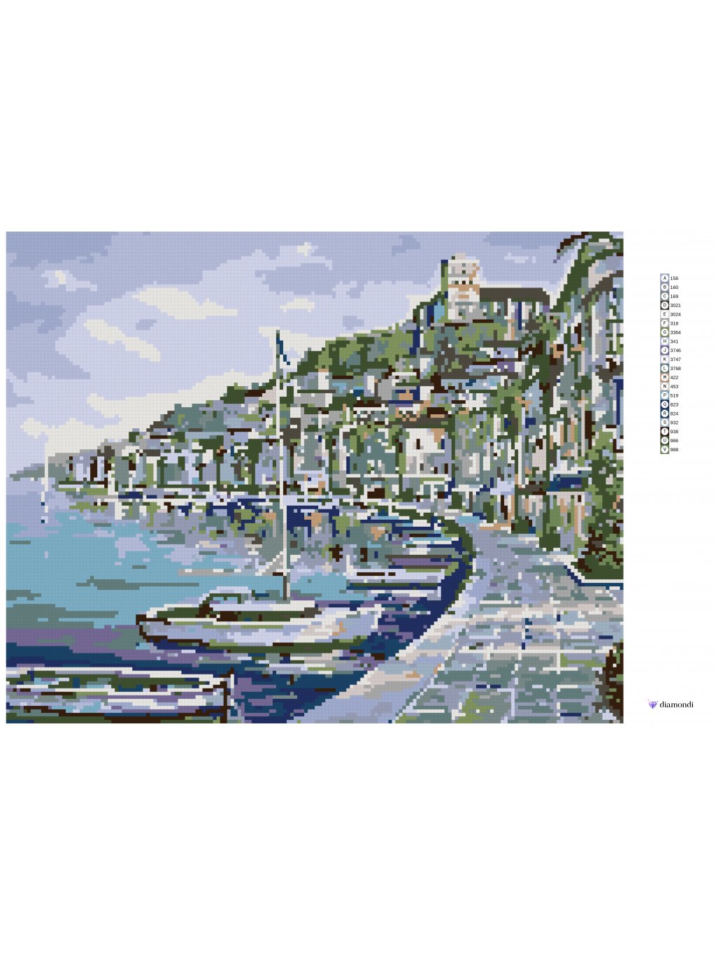 Diamantové maľovanie - MESTEČKO NA POBREŽÍ