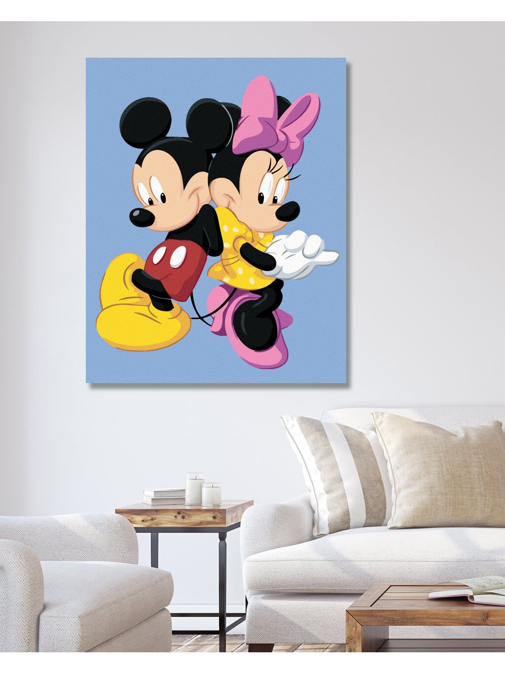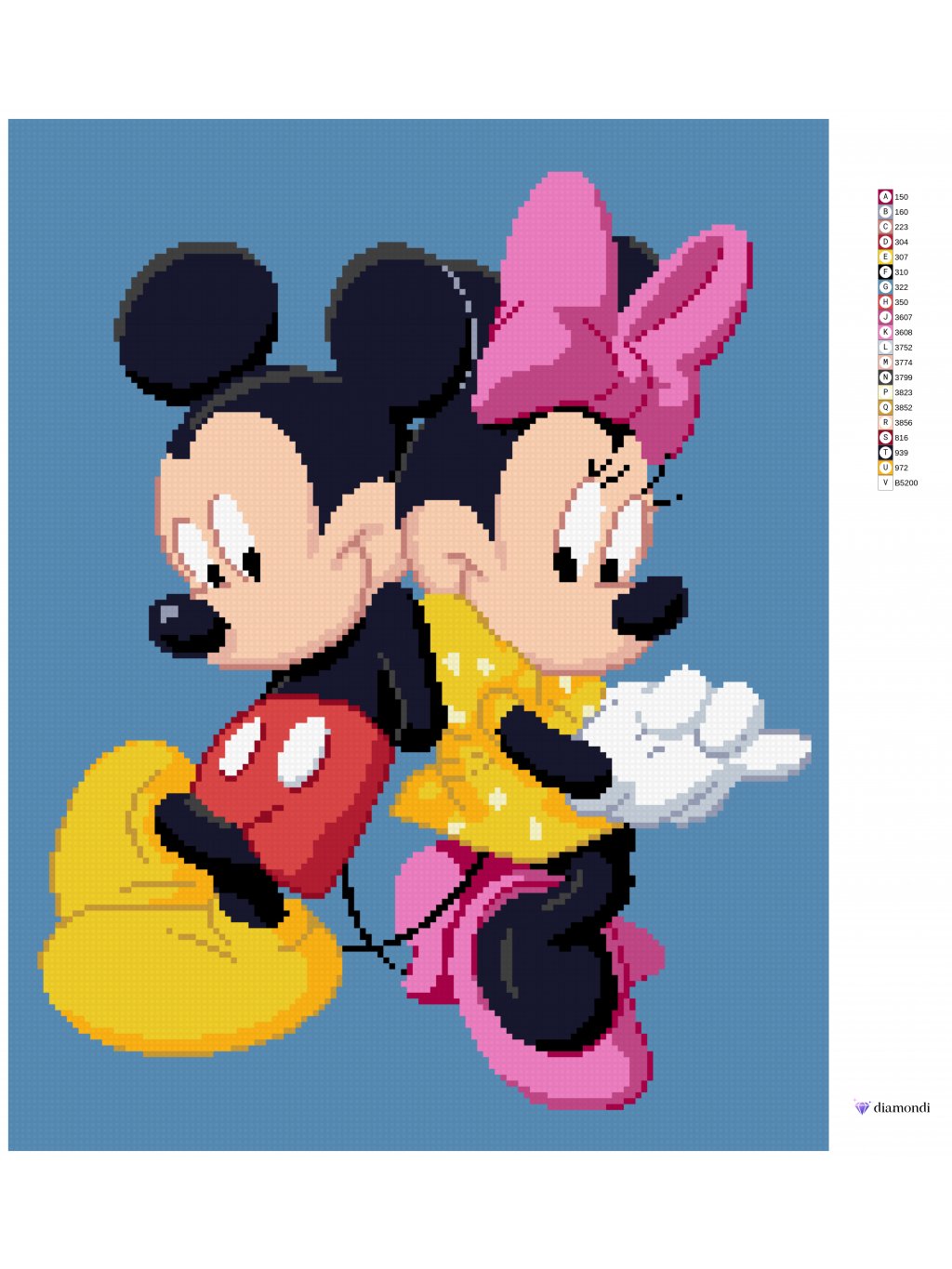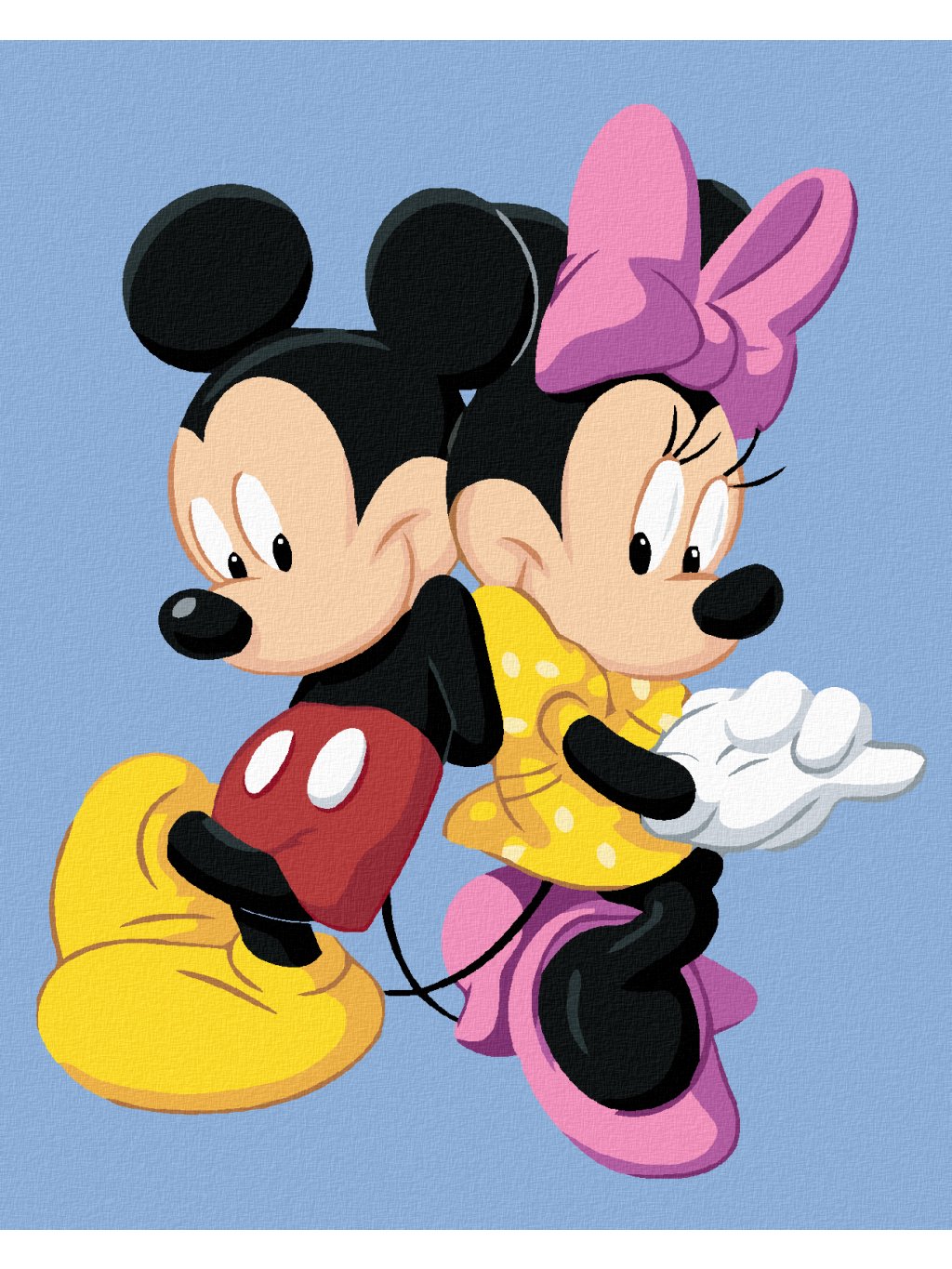Diamantové maľovanie - MICKEY MOUSE A MINNIE NA MODROM POZADÍ