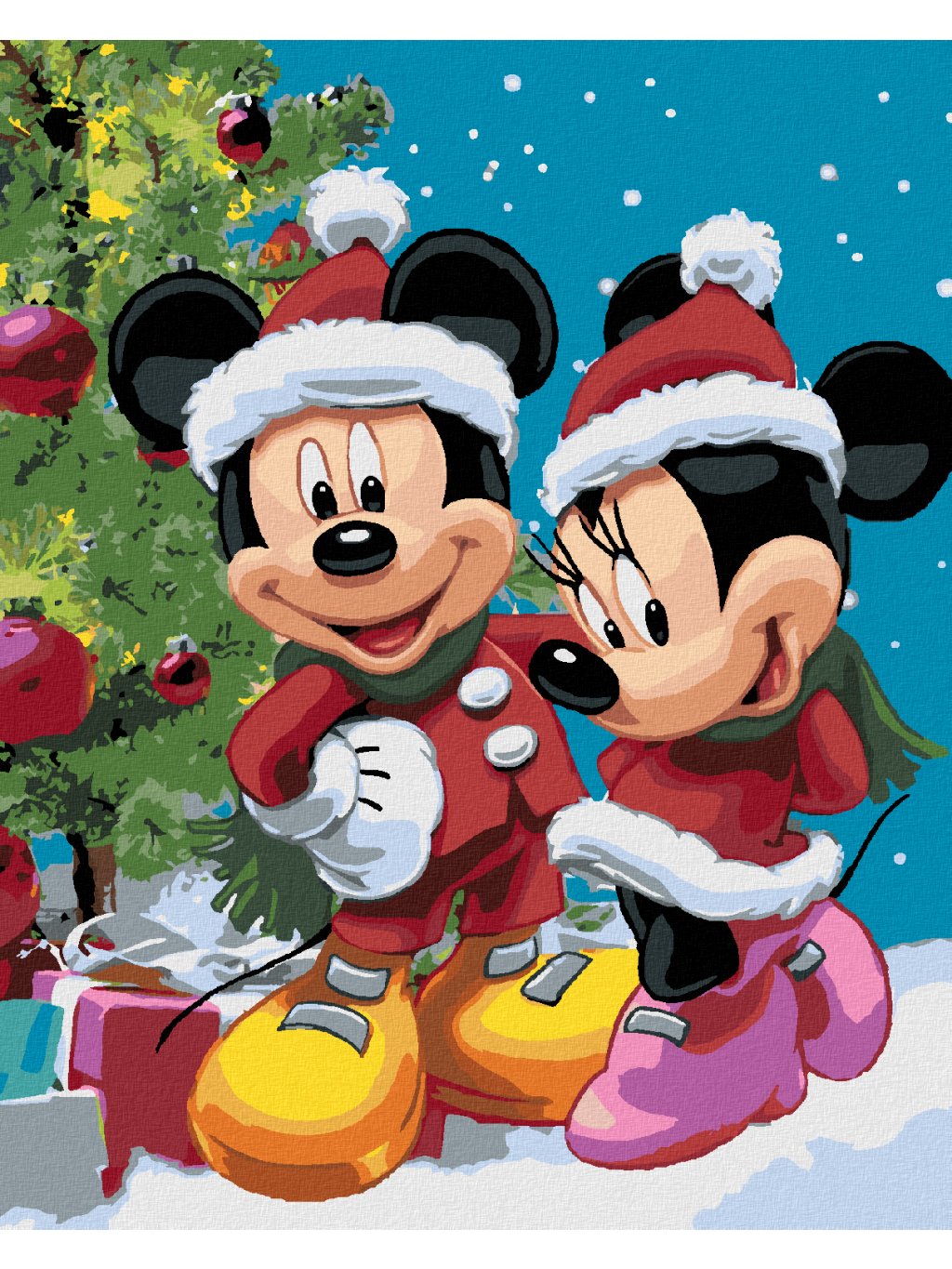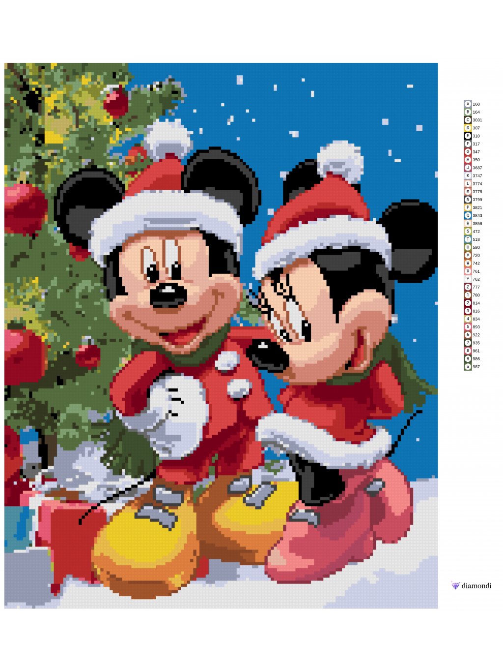 Diamantové maľovanie - MICKEY MOUSE A MINNIE VO VIANOČNOM