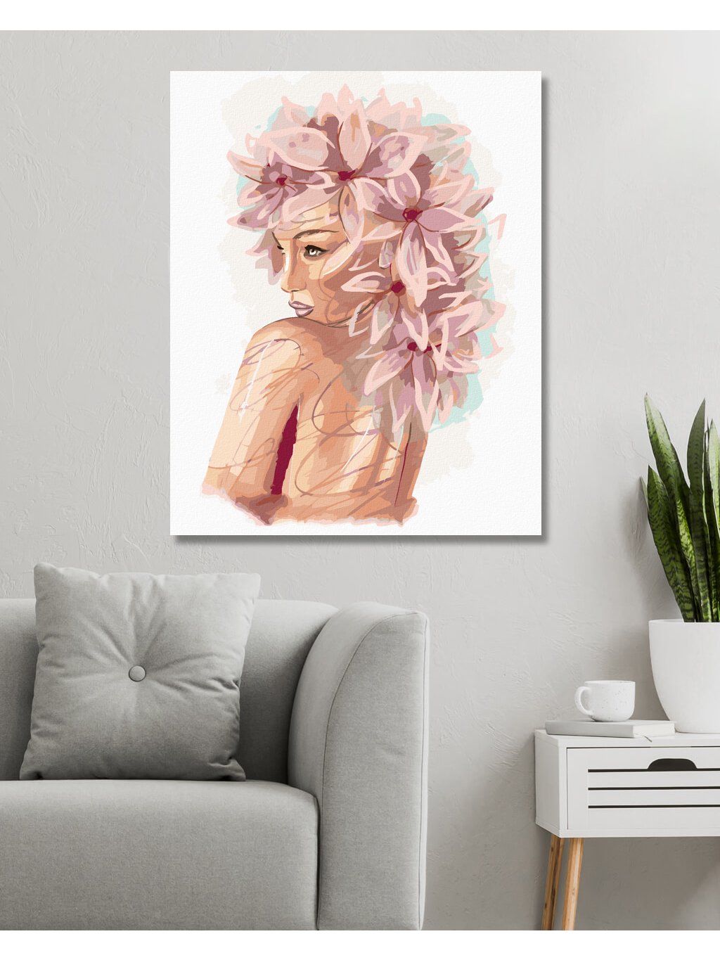 Diamantové maľovanie - ČIERNOVLASÁ ŽENA S KVETMI