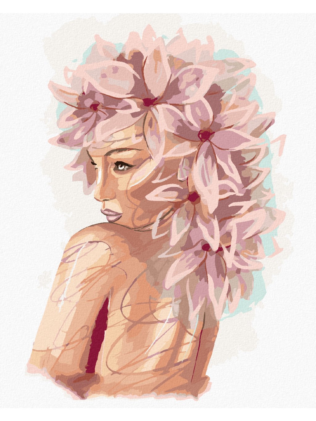 Diamantové maľovanie - MLADÁ ŽENA S RUŽOVÝMI KVETMI