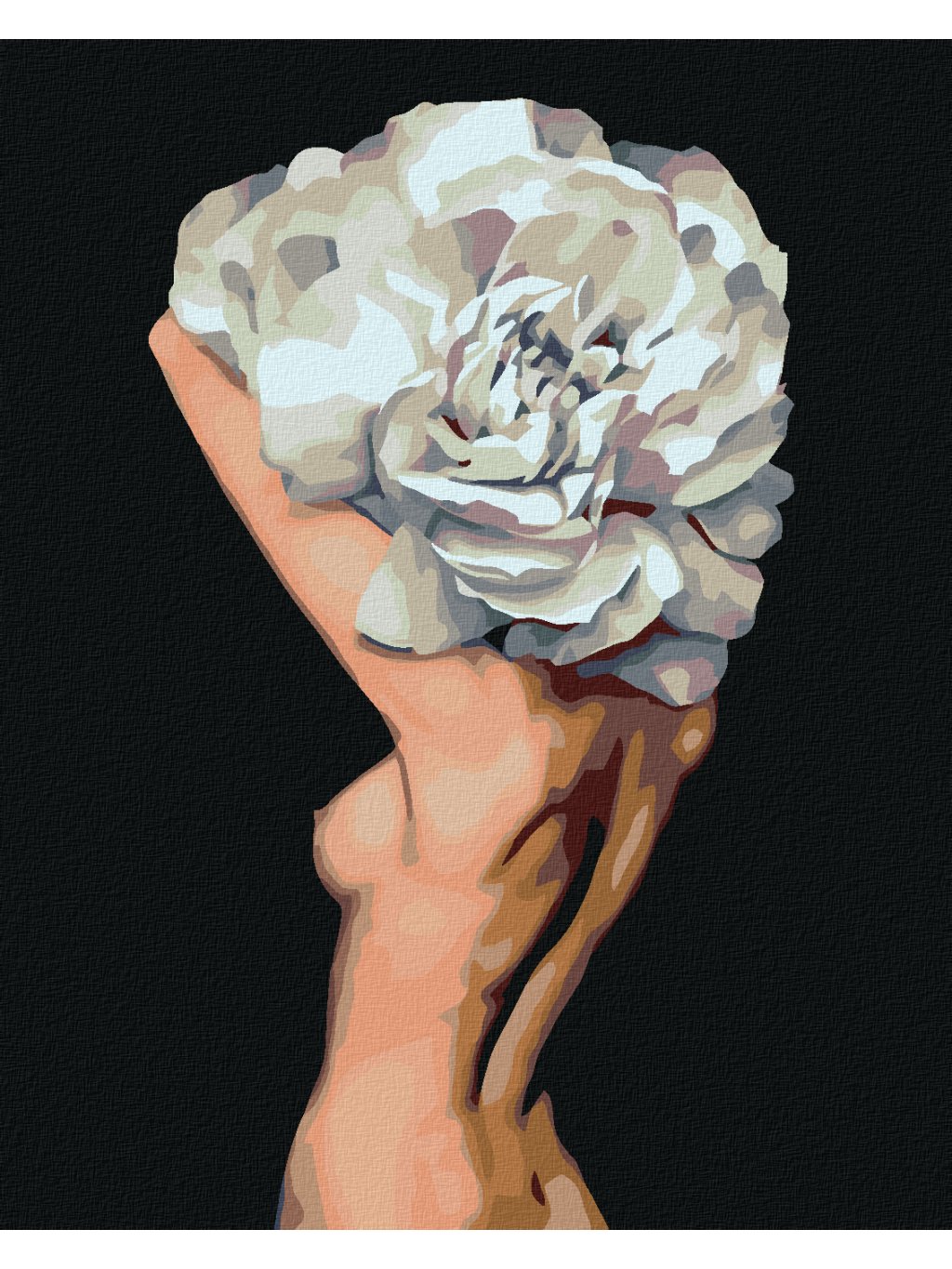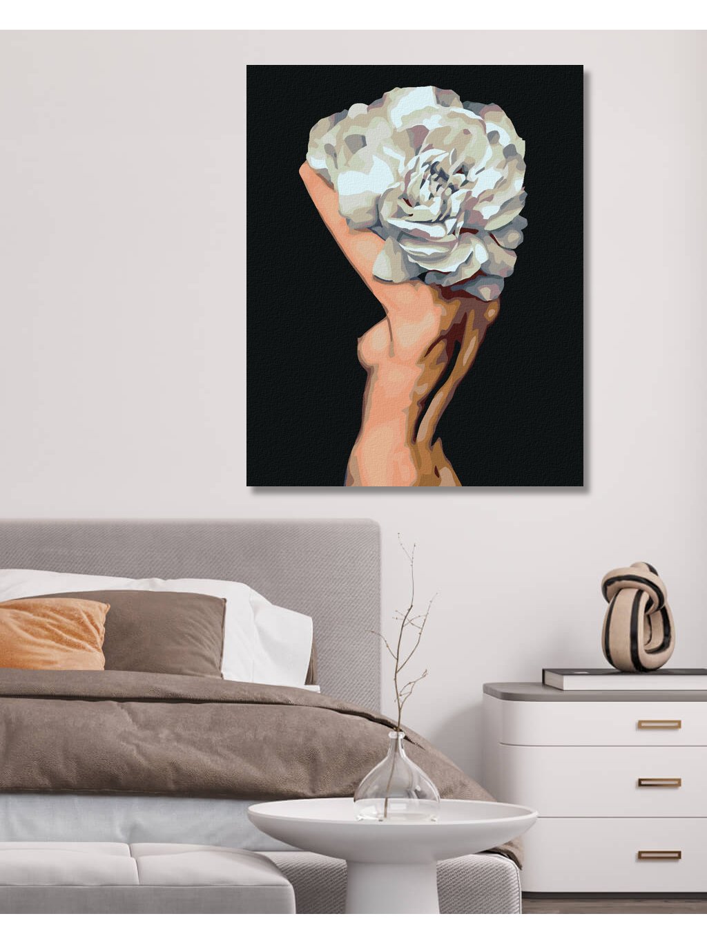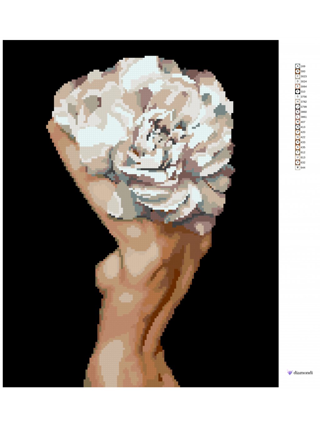 Diamantové maľovanie - NAHÁ ŽENA ZA VEĽKÝM KVETOM
