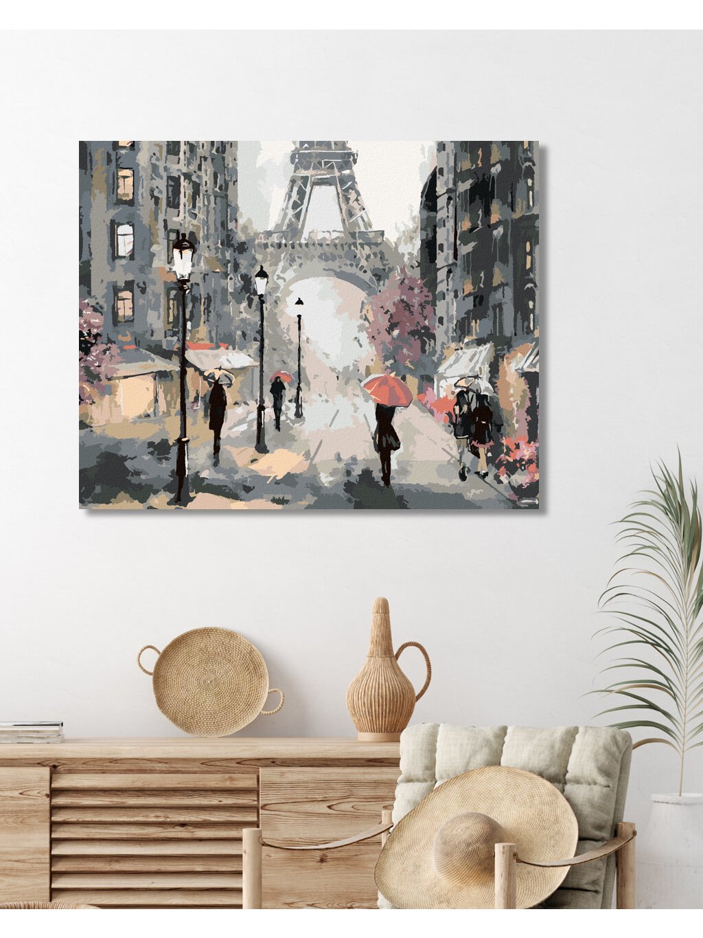 Diamantové maľovanie - PARÍŽ A ĽUDIA S RUŽOVÝMI DÁŽDNIKMI