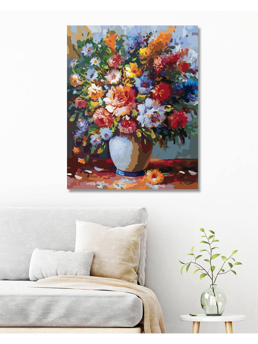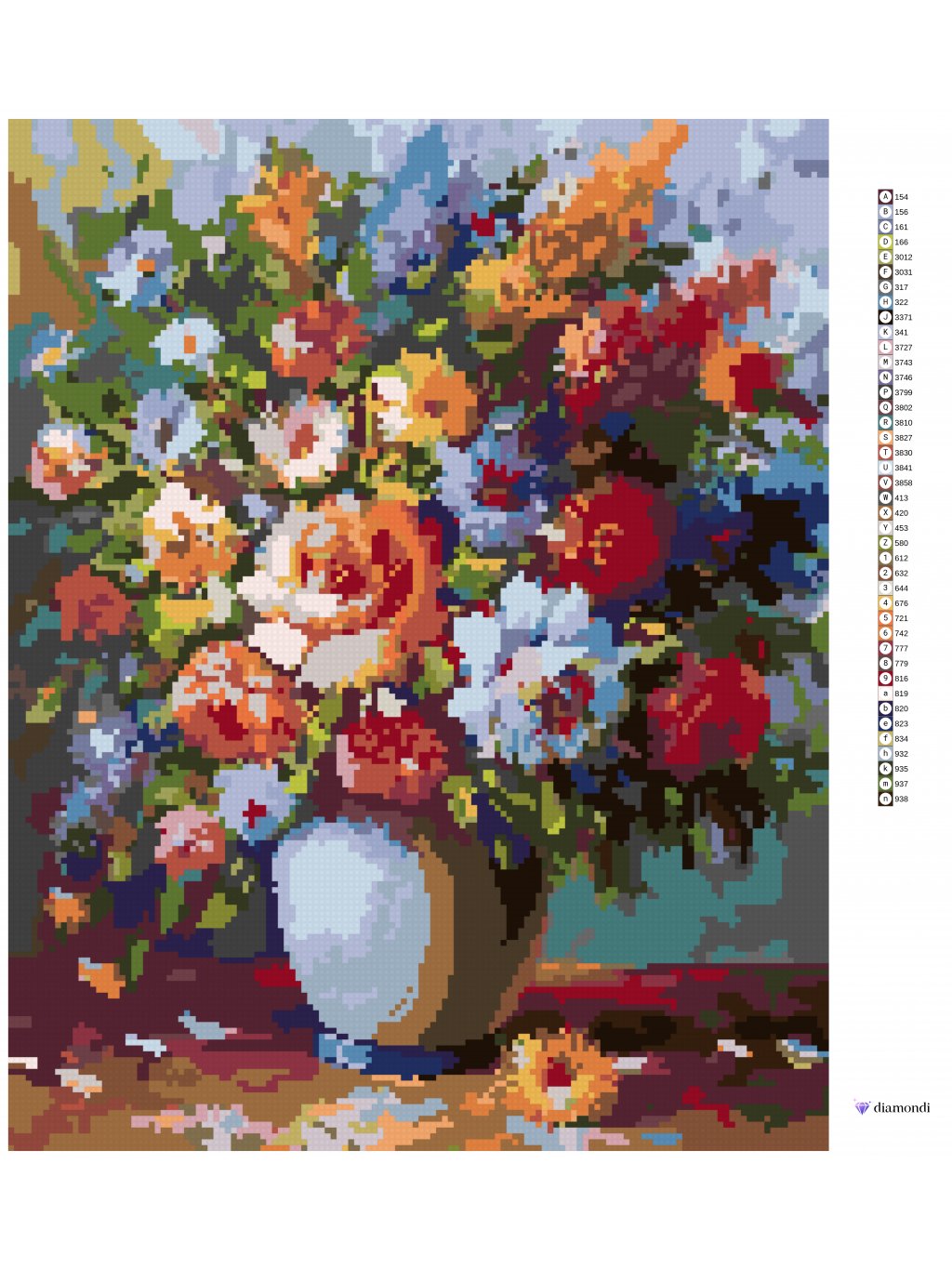 Diamantové maľovanie - PESTRÉ KVETY VO VÁZE